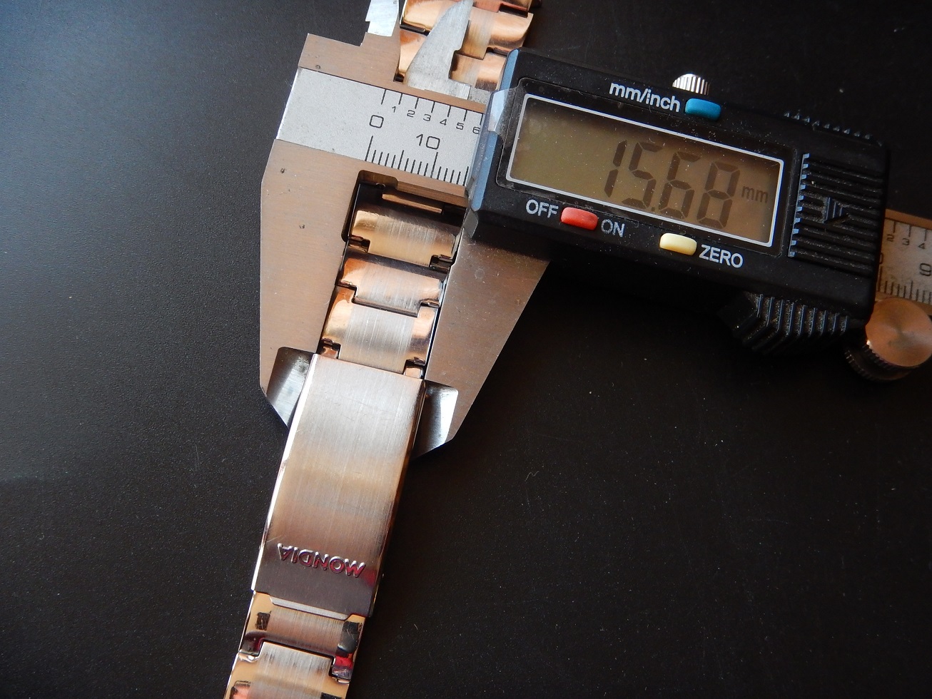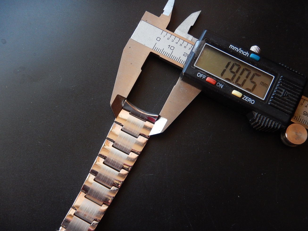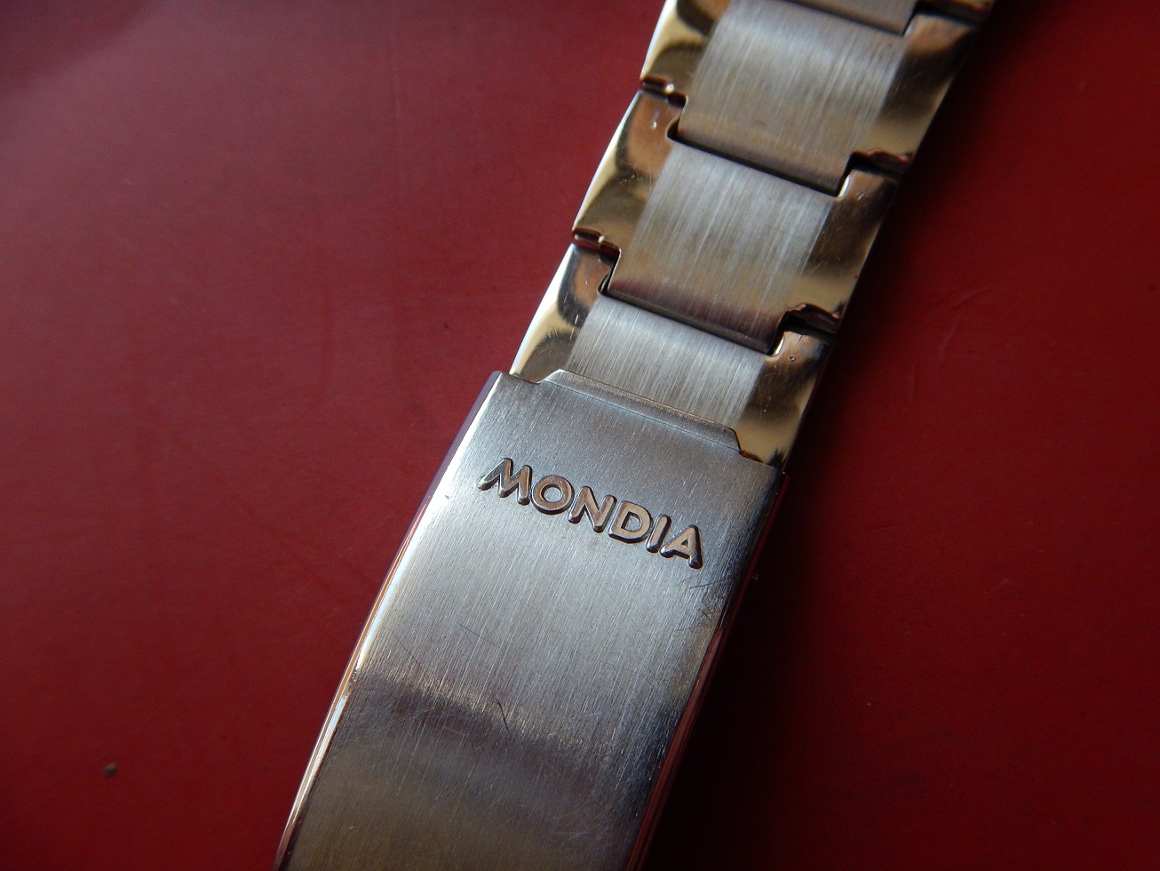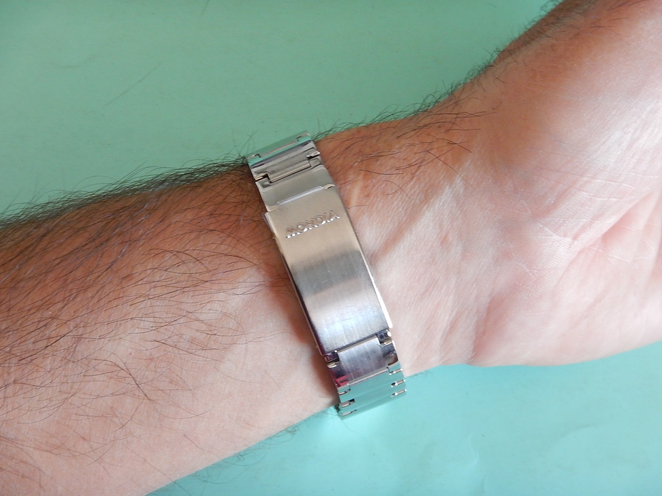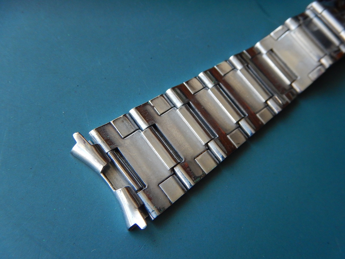 19 MM BRACELET MONDIA ACIER BROSSÉ & BRILLANT ANNÉES 60/70 END LINK COURBES 95.00 € Catégorie : Bracelets métal Contactez-nous Contactez-nous pour acheter 19 MM BRACELET MONDIA ACIER BROSSÉ & BRILLANT ANNÉES 60/70 END LINK COURBES Votre nom Votre e-mail Votre numéro de téléphone Votre message (facultatif) Description Bracelet Mondia, en acier inoxydable sur boucle dépliante, dans un état neuf, des années 60/70. Sa dimension au niveau des entre cornes est de 19 mm et 15.5 mm coté boucle. Sa longueur totale fermé est de 16 cm mais n’oubliez pas de compter la longueur de votre montre pour l’imaginer à votre poignet ou de le comparer avec votre ancien bracelet fermé. Bien entendu il y a la possibilité de l’ajuster à votre poignet en retirant des maillons ou, avec la plus grande précision, grâce aux 4 positions des trous dans la boucle. Produits similaires Bracelets métal24 25 26 27 28 mm SOLIDE BRACELET ROWI ACIER SUR BOUCLE DÉPLOYANTE IDEAL YEMA 55.00 € Lire la suite Bracelets métal19 MM BRACELET H POUR YEMA FLYGRAF RALLYGRAF SUPERMAN ACIER ÉTAT NEUF 70 150.00 € Lire la suite Bracelets19 mm BRACELET YEMA NAVYGRAF ACIER BOUCLE DÉPLOYANTE N.O.S. 70 / 80 110.00 € Lire la suite Bracelets métal18 19 OU 20 MM BRACELET DE MONTRE DorGay ACIER SWISS MADE N.O.S 60 165.00 € Lire la suite