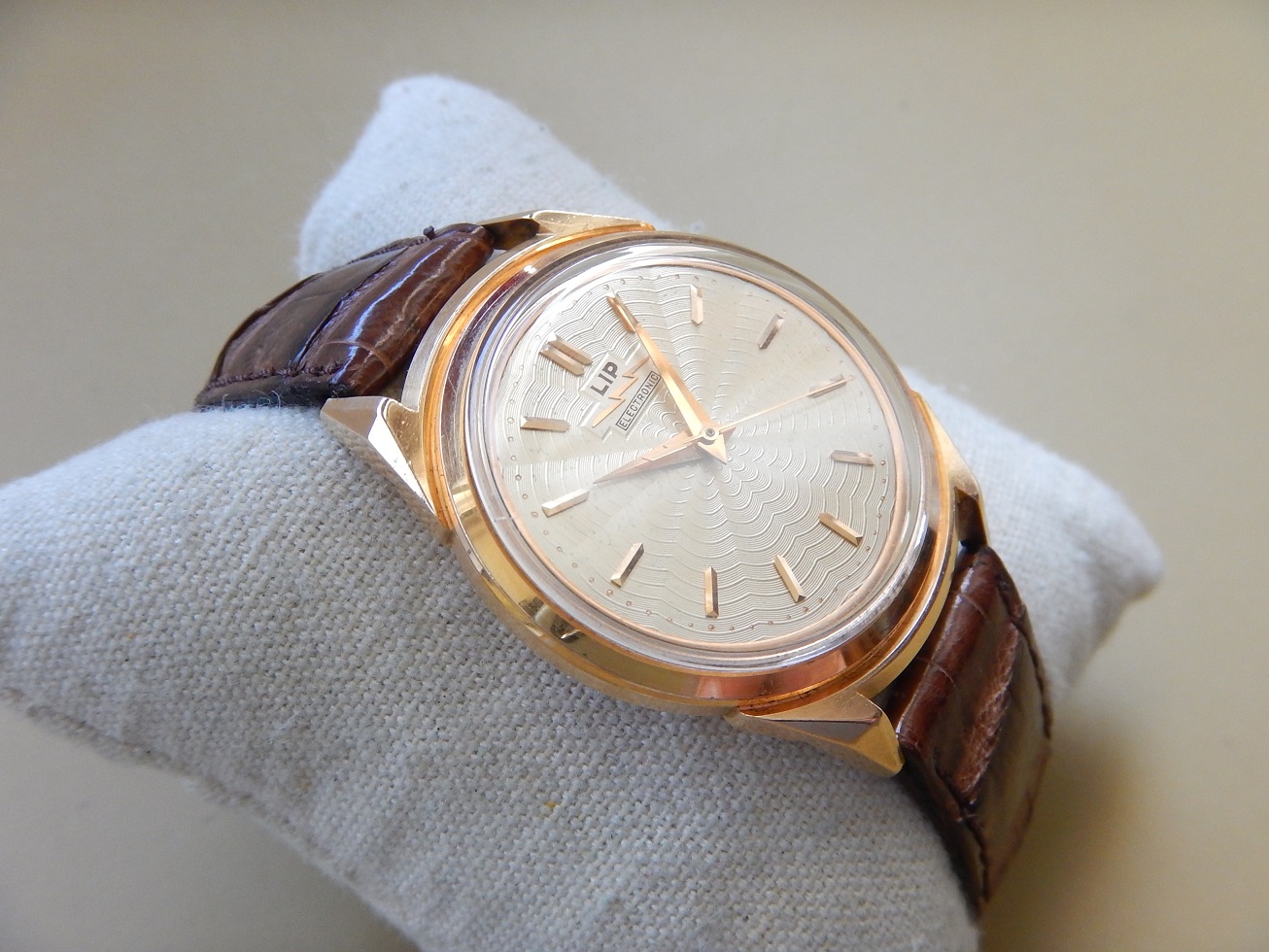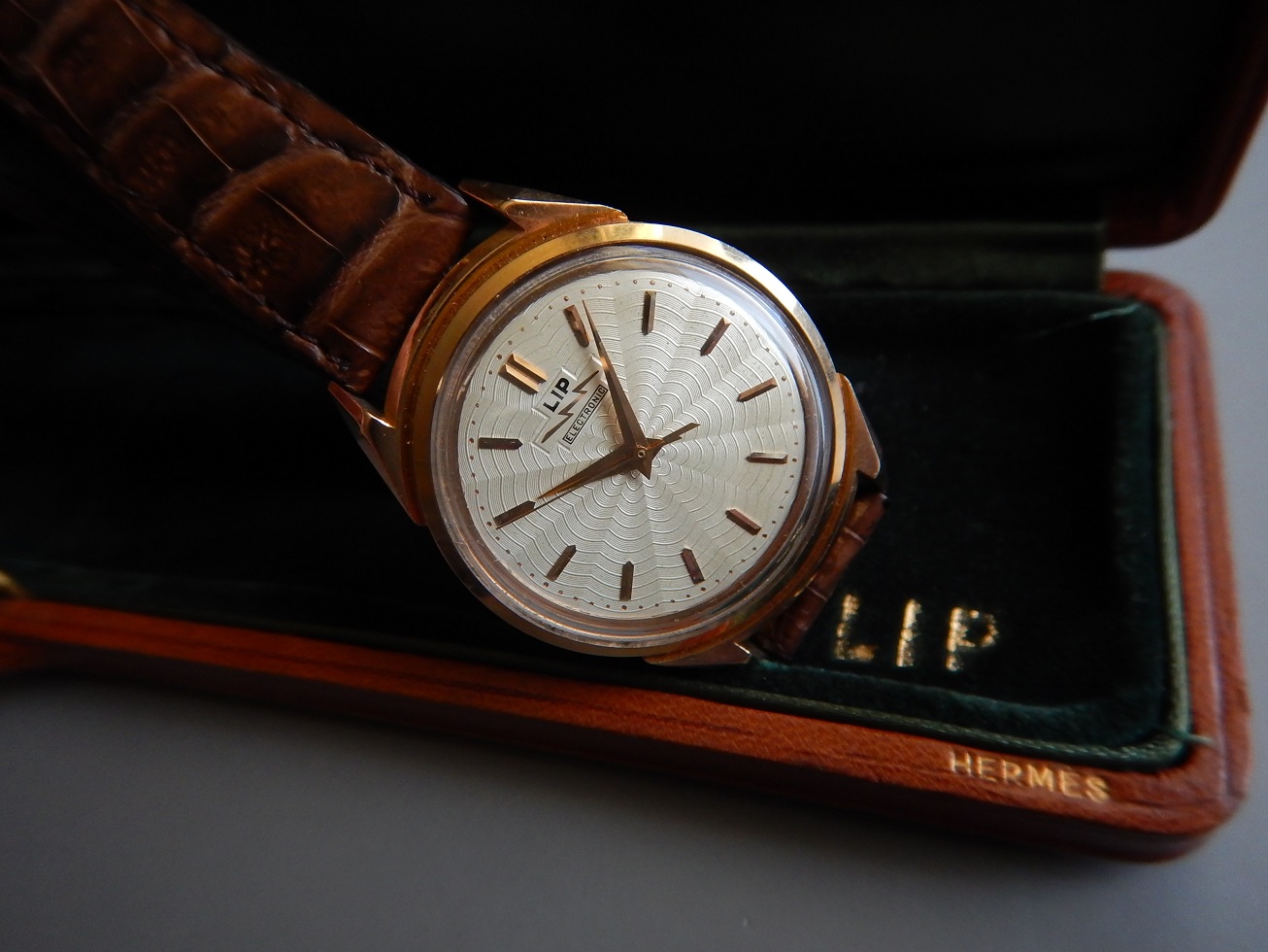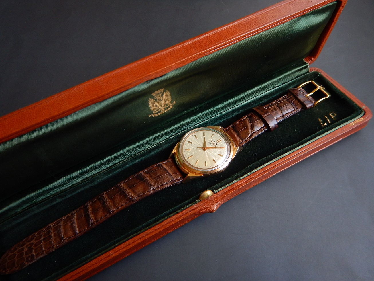 1958 TRÈS RARE LIP COSMIC R27 DU GÉNÉRAL DE GAULLE OR 18K HERMES BOX GARANTIE 4,830.00 € Catégorie : Montres de collection Contactez-nous Contactez-nous pour acheter 1958 TRÈS RARE LIP COSMIC R27 DU GÉNÉRAL DE GAULLE OR 18K HERMES BOX GARANTIE Votre nom Votre e-mail Votre numéro de téléphone Votre message (facultatif) Description HISTORIQUE DE LA MANUFACTURE Quelques mots de sa fille Muriel Lip-Vidal : « Écrire (…) est toujours un exercice périlleux surtout quand il s’agit de son propre père et Fred Lip était mon père. C’était un homme hors du commun, un original, un visionnaire. Son comportement pour le moins inhabituel et son caractère tranché lui ont attiré de solides inimitiés et beaucoup d’incompréhensions mais ils lui ont aussi acquis des amitiés profondes et assuré la fidélité de bon nombre de gens de toutes sortes, employés, artistes, scientifiques, alpinistes, industriels et même hommes politiques. Comme tous les hommes, il avait des défauts et a fait des erreurs mais, comme peu d’hommes, il a réussi des choses extraordinaires et a eu des passions dévorantes. Parmi toutes ses passions, en dehors de celle, dévorante qu’il me vouait à moi sa fille unique, il y a eu la montagne et les voitures rapides et, surtout, celle qu’il a toujours entretenue pour la société Lip, cette société qu’il a retrouvée ruinée au lendemain de la guerre. Pourtant, contre vents et marées, grâce à son travail, son courage et son imagination, il a réussi à en faire une grande société, connue et reconnue dans le monde entier, un symbole et un modèle de ce qu’aurait dû être une société horlogère. Il en a fait la société à qui l’horlogerie doit tant de choses qui semblent aujourd’hui, banales. Qui se souvient que la première chaine de montage automatisée pour l’horlogerie, c’est lui ? Qui se souvient que la première montre-bracelet électrique, c’est encore lui ? Qui se souvient encore que c’est à Lip qu’on doit la première et sans doute la seule minuterie mécanique programmable pour satellite construite pour l’ESA ? Qui se souvient aussi qu’en 1929, Fred Lip était recordman du monde de vitesse à moto sur 5 & 10 km et 5 & 10 miles ? Sans doute plus personne ! Hélas, ce qu’on a appelé les évènements Lip et tout ce qui les a accompagnés, non seulement ont détruit la société qui portait son nom mais ont également laissé de lui une image qui ne correspond ni à la réalité de la société ni à la vérité de l’homme qu’il était. Était-il, malgré ses erreurs, le dernier survivant de la race des industriels créateurs et pionniers tels qu’on en voyait tant au XIXè siècle ou un de ces visionnaires qui ont préparé le passage au XXIè siècle ? Nul ne peut le dire (…) ». Depuis 1867, la célèbre marque LIP s’est imposée comme la digne représentante de la grande tradition horlogère française. Maîtrise du temps, savoir-faire, innovation, séduction et qualité de fabrication sont depuis toujours les lettres de noblesse de cette marque de renommée internationale. Inscrites au Patrimoine Industriel de la France, les montres LIP ont construit leur réputation grâce au soutien de personnalités célèbres (le Général Eisenhower, Sir Winston Churchill, le Général de Gaulle, ou encore Bill Clinton) et aux évènements auxquels elle fut associée. Aujourd’hui, les lignes élégantes et raffinées des collections LIP connaissent toujours plus de succès. En s’appuyant sur une très forte identité avec son célèbre logo, sur des finitions contrastées, des matériaux de qualité, ces montres vous donnent le meilleur de la marque LIP. LA MONTRE DES PRÉSIDENTS Ce modèle est devenu particulièrement célèbre grâce à une photo du général De Gaulle en compagnie du Général Eisenhower marchand et regardant tous les deux l’heure à leurs poignets (voir une des photos de cette annonce). Lors d’une visite dans les usines de Palente, le général De Gaulle la recevra en cadeau par Fred LIP en 1958. La légende veut que le Général ait jugé cette montre au boîtier en or trop luxueuse pour la porter, mais qu’elle trônait sur sa table de nuit. Dans le livre de Maria Pia Coustant « des heures à conter », Fred Lip raconte : « j’ai voulu que le Général soit le premier au monde à posséder l’une des montres électriques à pile créées par la firme que je dirigeais. Comme sa vue était mauvaise, je lui ai fait un cadran très lisible, avec des gros chiffres et des aiguilles particulièrement voyantes. Grâce à la complicité de Mme de Gaulle et du commandant Sabot, nous mimes au point un plan astucieux pour assurer l’exactitude du Président. Deux montres similaires furent établies, elles prenaient le relais toutes les semaines, sur sa table de nuit. Soigneusement réglées, sur ma demande, par un maître en la matière dans nos laboratoires, elles étaient remplacées après avoir varié de quelques secondes ». Une R27 sera offerte peu de temps après celle de De Gaulle au général Dwight Eisenhower. En juillet 2019, la première Lip Cosmic du Général estimée alors entre 6000 et 10000 euros, aura été adjugée pour 32500 euros. Un moment de l’histoire de France comme de l’histoire de l’horlogerie française. « Non seulement elle possède un passé historique fort, mais elle est en outre la première montre-bracelet de De Gaulle mis en vente aux enchères », précisait alors Geoffroy Ader, l’expert indépendant l’ayant estimée. La deuxième montre LIP R27 en or, portée par le Général De Gaulle, provenant de la succession de son fils l’amiral Philippe de Gaulle, passe sous le marteau (toujours chez Artcurial) le 16 décembre 2024 et a été adjugée à la somme impressionnante de 410 000 euros, soit 537 920 euros avec les frais. Cette enchère constitue non seulement la plus élevée de la vente, mais elle établit également un record pour 