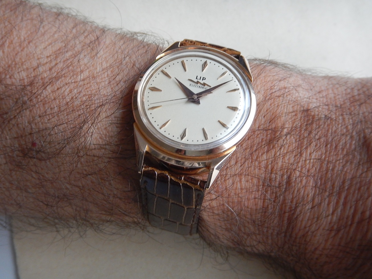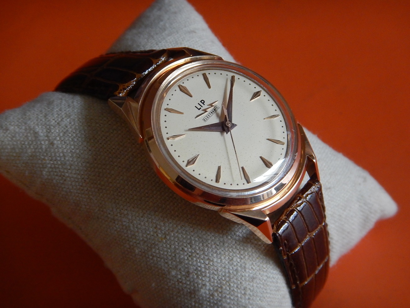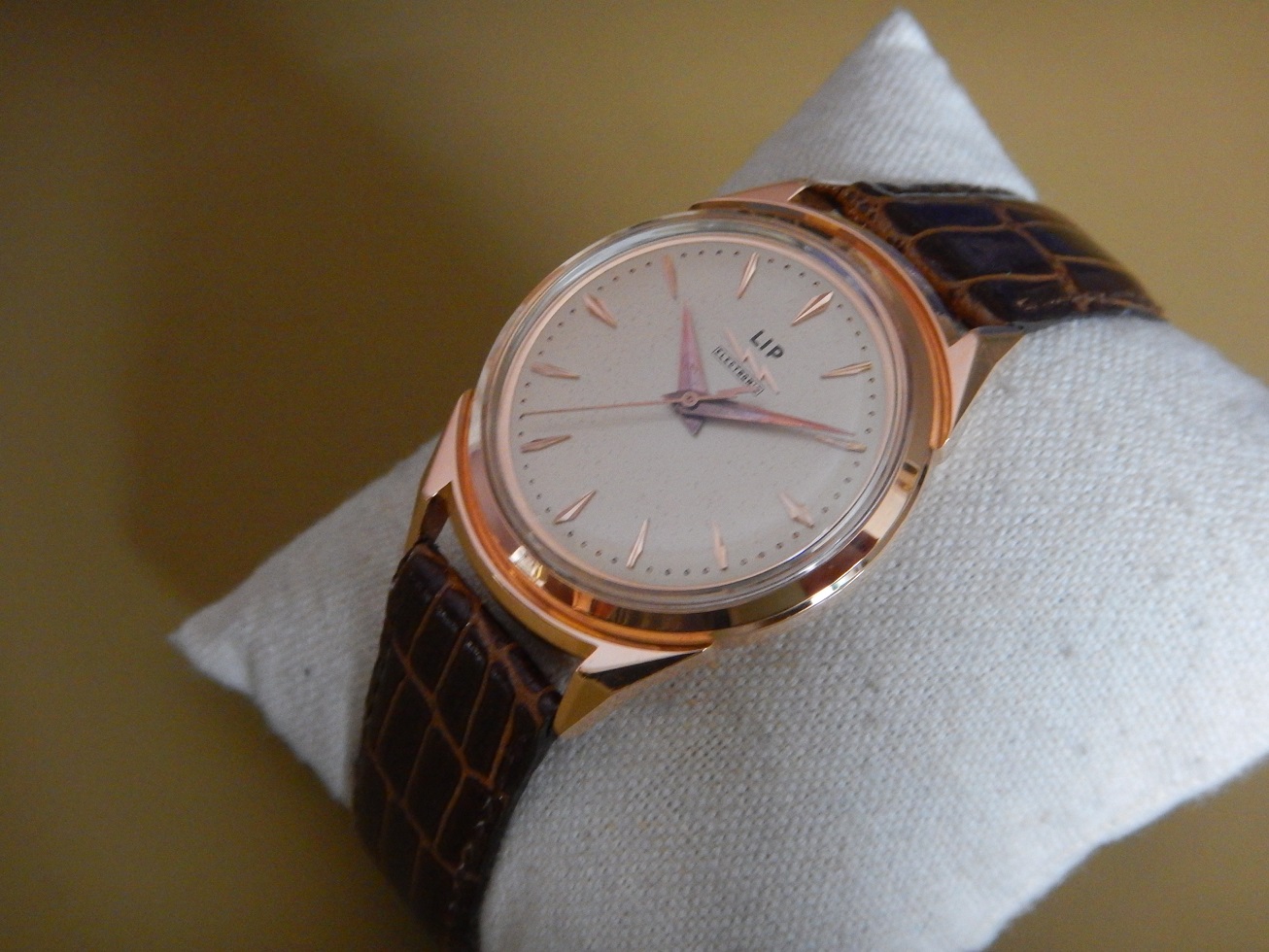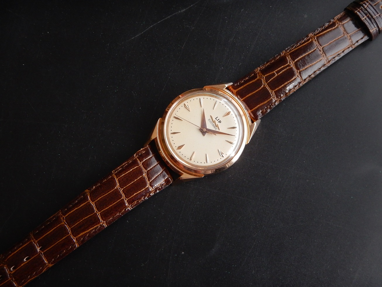 1958 TRÈS RARE LIP COSMIC R27 DU GÉNÉRAL DE GAULLE OR ROSE 18K LA 1ère ÉLECTRIC 4,455.00 € Catégorie : Montres de collection Contactez-nous Contactez-nous pour acheter 1958 TRÈS RARE LIP COSMIC R27 DU GÉNÉRAL DE GAULLE OR ROSE 18K LA 1ère ÉLECTRIC Votre nom Votre e-mail Votre numéro de téléphone Votre message (facultatif) Description HISTORIQUE DE LA MANUFACTURE Quelques mots de sa fille Muriel Lip-Vidal : « Écrire (…) est toujours un exercice périlleux surtout quand il s’agit de son propre père et Fred Lip était mon père. C’était un homme hors du commun, un original, un visionnaire. Son comportement pour le moins inhabituel et son caractère tranché lui ont attiré de solides inimitiés et beaucoup d’incompréhensions mais ils lui ont aussi acquis des amitiés profondes et assuré la fidélité de bon nombre de gens de toutes sortes, employés, artistes, scientifiques, alpinistes, industriels et même hommes politiques. Comme tous les hommes, il avait des défauts et a fait des erreurs mais, comme peu d’hommes, il a réussi des choses extraordinaires et a eu des passions dévorantes. Parmi toutes ses passions, en dehors de celle, dévorante qu’il me vouait à moi sa fille unique, il y a eu la montagne et les voitures rapides et, surtout, celle qu’il a toujours entretenue pour la société Lip, cette société qu’il a retrouvée ruinée au lendemain de la guerre. Pourtant, contre vents et marées, grâce à son travail, son courage et son imagination, il a réussi à en faire une grande société, connue et reconnue dans le monde entier, un symbole et un modèle de ce qu’aurait dû être une société horlogère. Il en a fait la société à qui l’horlogerie doit tant de choses qui semblent aujourd’hui, banales. Qui se souvient que la première chaine de montage automatisée pour l’horlogerie, c’est lui ? Qui se souvient que la première montre-bracelet électrique, c’est encore lui ? Qui se souvient encore que c’est à Lip qu’on doit la première et sans doute la seule minuterie mécanique programmable pour satellite construite pour l’ESA ? Qui se souvient aussi qu’en 1929, Fred Lip était recordman du monde de vitesse à moto sur 5 & 10 km et 5 & 10 miles ? Sans doute plus personne ! Hélas, ce qu’on a appelé les évènements Lip et tout ce qui les a accompagnés, non seulement ont détruit la société qui portait son nom mais ont également laissé de lui une image qui ne correspond ni à la réalité de la société ni à la vérité de l’homme qu’il était. Était-il, malgré ses erreurs, le dernier survivant de la race des industriels créateurs et pionniers tels qu’on en voyait tant au XIXè siècle ou un de ces visionnaires qui ont préparé le passage au XXIè siècle ? Nul ne peut le dire (…) ». Depuis 1867, la célèbre marque LIP s’est imposée comme la digne représentante de la grande tradition horlogère française. Maîtrise du temps, savoir-faire, innovation, séduction et qualité de fabrication sont depuis toujours les lettres de noblesse de cette marque de renommée internationale. Inscrites au Patrimoine Industriel de la France, les montres LIP ont construit leur réputation grâce au soutien de personnalités célèbres (le Général Eisenhower, Sir Winston Churchill, le Général de Gaulle, ou encore Bill Clinton) et aux évènements auxquels elle fut associée. Aujourd’hui, les lignes élégantes et raffinées des collections LIP connaissent toujours plus de succès. En s’appuyant sur une très forte identité avec son célèbre logo, sur des finitions contrastées, des matériaux de qualité, ces montres vous donnent le meilleur de la marque LIP. LA MONTRE DES PRÉSIDENTS Ce modèle est devenu particulièrement célèbre grâce à une photo du général De Gaulle en compagnie du Général Eisenhower marchand et regardant tous les deux l’heure à leurs poignets (voir une des photos de cette annonce). Lors d’une visite dans les usines de Palente, le général De Gaulle la recevra en cadeau par Fred LIP en 1958. La légende veut que le Général ait jugé cette montre au boîtier en or trop luxueuse pour la porter, mais qu’elle trônait sur sa table de nuit. Dans le livre de Maria Pia Coustant « des heures à conter », Fred Lip raconte : « j’ai voulu que le Général soit le premier au monde à posséder l’une des montres électriques à pile créées par la firme que je dirigeais. Comme sa vue était mauvaise, je lui ai fait un cadran très lisible, avec des gros chiffres et des aiguilles particulièrement voyantes. Grâce à la complicité de Mme de Gaulle et du commandant Sabot, nous mimes au point un plan astucieux pour assurer l’exactitude du Président. Deux montres similaires furent établies, elles prenaient le relais toutes les semaines, sur sa table de nuit. Soigneusement réglées, sur ma demande, par un maître en la matière dans nos laboratoires, elles étaient remplacées après avoir varié de quelques secondes ». Une R27 sera offerte peu de temps après celle de De Gaulle au général Dwight Eisenhower. En juillet 2019, la première Lip Cosmic du Général estimée alors entre 6000 et 10000 euros, aura été adjugée pour 32500 euros. Un moment de l’histoire de France comme de l’histoire de l’horlogerie française. « Non seulement elle possède un passé historique fort, mais elle est en outre la première montre-bracelet de De Gaulle mis en vente aux enchères », précisait alors Geoffroy Ader, l’expert indépendant l’ayant estimée. La deuxième montre LIP R27 en or, portée par le Général De Gaulle, provenant de la succession de son fils l’amiral Philippe de Gaulle, passe sous le marteau (toujours chez Artcurial) le 16 décembre 2024 et a été adjugée à la somme impressionnante de 410 000 euros, soit 537 920 euros avec les frais. Cette enchère constitue non seulement la plus élevée de la vente, mais elle établit également un reco