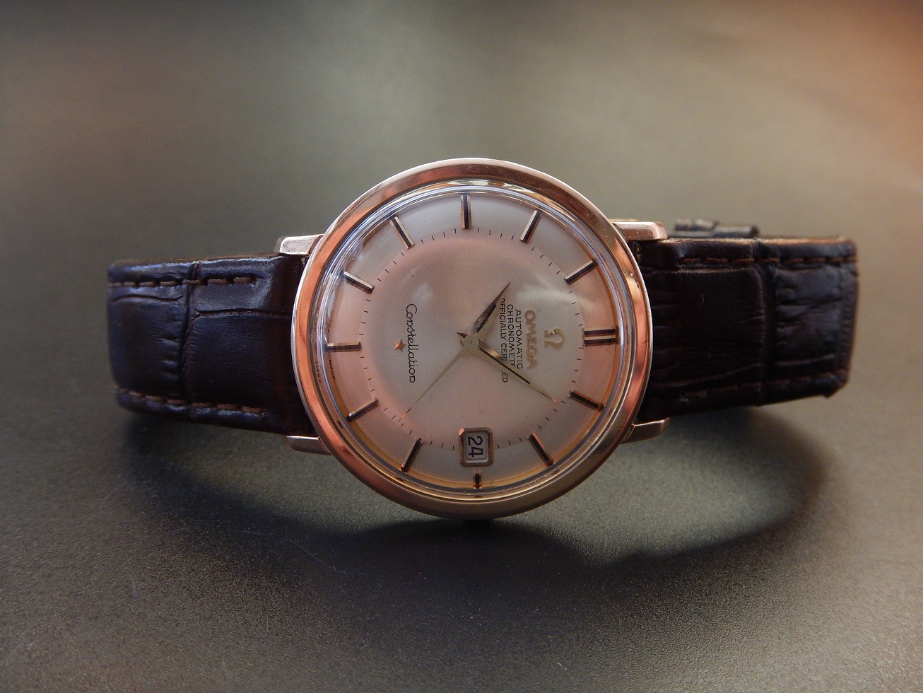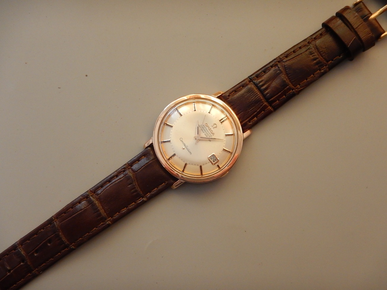 1966 CHRONOMETRE OMEGA CONSTELLATION CADRAN PIE PAN AUTOMATIQUE OR ROSE & ACIER 2,235.00 € Catégorie : Montres de collection Contactez-nous Contactez-nous Votre nom Votre e-mail Votre numéro de téléphone Votre message (facultatif) Description HISTORIQUE DE LA MANUFACTURE Le nom Omega et sa marque étaient protégés dès le 10 mars 1894 et enregistrés le lendemain. Cette marque, qui est facile à lire et également facile à prononcer dans la plupart des grandes langues dans le monde, a supplanté petit à petit les autres marques créées par la famille Brandt telles que « Louis Brandt », « Gurzelen », ou Labrador. Les premières montres-poignet de la société ont été fabriquées au début du siècle. Ces mécanismes d’horlogerie avaient habituellement des boîtiers scellés en argent, des mouvements 12-lignes et des passants ajustables pour leur bracelet en cuir. Les soldats de la première guerre mondiale avaient besoin de montres-bracelets avec des grilles de protection en métal sur le verre renforcé. La couronne de remontoir était soit sur la gauche soit sur la droite. La plupart de ces montres avaient de grands chiffres lumineux et de grosses aiguilles revêtues de métal lumineux. Louis Brandt et Frères SA (LBF) a vendu ses premières montres bracelets avec des mouvements à sonnerie minutes en 1892. Des posters lithographiés portant le nom des concessionnaires prouvent que la marque produisait déjà et promouvait des montres bracelets en 1910. Si un collectionneur devait tomber sur un de ces rares posters, il ou elle devrait absolument l’acheter !! Omega a d’abord commencé par participer à des compétitions de chronométrage vers la fin des années 1920. Les montres de la société ont gagné la première place dans une compétition à Nueunburg et Omega fut de la même manière victorieuse à Kew-Teddington où la société a battu tous les records de précision en 1930. Omega fit la même chose de 1932 à 1934 et quasiment sans interruption de 1941 à 1967. Les gagnantes étaient des montres-bracelets avec de grands calibres de la plus belle qualité. Elles portaient 23 rubis. Les ingénieurs d’Omega travaillaient déjà sur le concept de montres bracelets étanches à l’époque. Quelques rares spécimens de la célèbre « montre marine » peuvent encore se trouver en bon état aujourd’hui. Cette montre rectangulaire avec son double boîtier étonnait les experts, comme le fit la première montre sport d’Omega, étanche à 135 mètres, la montre marine n’était pas aussi adaptée pour les plongées profondes que les montres étanches actuelles, mais néanmoins, le fait qu’Omega fût le premier à en produire une dans les années 30 fut un pas très important. Ici aussi les spécialistes d’Omega avaient déjà reconnu quels seraient les détails importants pour les montres-bracelets utilitaires à venir. Il en va de même pour les premiers chronographes. Pour ainsi dire : si vous avez la chance d’en voir une, achetez-la ! Et si vous en avez déjà une, gardez-la ! POURQUOI DES CATÉGORIES ??? En 1967 la firme Omega décide de renforcer et de développer la marque en assurant une exploitation plus efficace de ses débouchés existant et futur. A l’exception de la haute joaillerie, tous les modèles sont répartis en quatre groupes homogènes fondés essentiellement sur les besoins des différentes catégories de consommateurs : – Constellation : luxe – Seamaster : sport – De Ville : mode – Genève : qualité standard Omega « CONSTELLATION » SYNONYME D’EXCELLENCE Les Constellation correspondaient au concept général de luxe, destinées à une clientèle aisée, soucieuse de perfection et de prestige. La Constellation avait le cachet inimitable de l’objet travaillé à la main. C’est en 1952 que les premières Constellation chronomètres-bracelets automatiques virent le jour. Ces véritables symboles de la perfection horlogère constituent depuis lors le fer de lance du haut de gamme. En astronomie, une constellation est un groupe d’étoiles dont le mouvement apparent autour de la terre évoque les rouages d’un garde-temps. En horlogerie, la Constellation est synonyme de l’art le plus achevé de la montre : précision du mouvement, élégances et perfection des formes. Le nom Constellation est souligné par une étoile d’or en applique. Quant à l’observatoire surmonté par une … constellation de huit étoiles qui est représenté sur le fond de la boîte, il évoque les nombreuses victoires remportées par Omega dans les concours de chronométrie, dont les fameux records du monde de précision de 1933 et 1936 à Kew-Teddington. Depuis 1982 la nouvelle ligne des Omega Constellation sont aux poignets de nombreuses célébrités (Cindy Crawford, Pierce Brosman, Martina Hingis) et c’est pour son élégance, sa classe, son raffinement, son style et la modernité du design qu’elle concrétise une fois de plus la sensibilité qu’Omega manifeste vis-à-vis du style et du goût des hommes et des femmes actuelles. NE PAS CONFONDRE CHRONOGRAPHE ET CHRONOMÈTRE : Le chronographe est un appareil horaire, dans le cas particulier une montre, possédant une aiguille placée au centre du mouvement. Cette aiguille, nommée « trotteuse », peut être à volonté : mise en marche, arrêtée, puis ramenée au point de départ. Ces différentes « fonctions » sont opérées au moyen d’un mécanisme dit « de chronographe ». On confond assez souvent les termes de chronographe et de chronomètre (cependant un chronographe peut être aussi chronomètre, vous comprendrez …). Un chronomètre est une montre qui, observée dans différentes positions et à des températures diverses, donne des résultats de réglage suffisants pour obtenir un certificat officiel de marche (certificat de chronométrie en général délivré par le COSC : Contrôle Officiel Suisse des Chronomètres). Dans le cas de cette Constellation il s