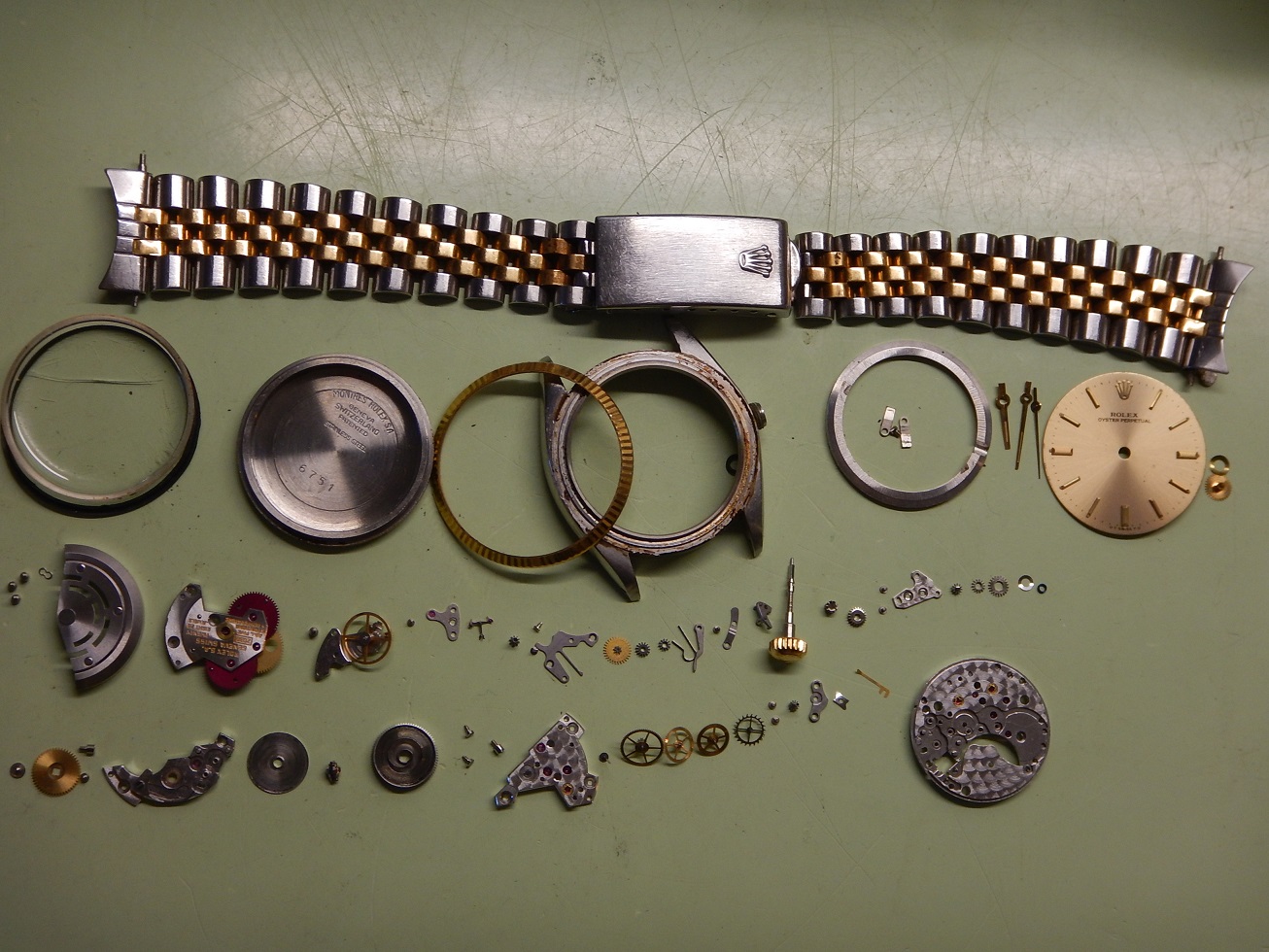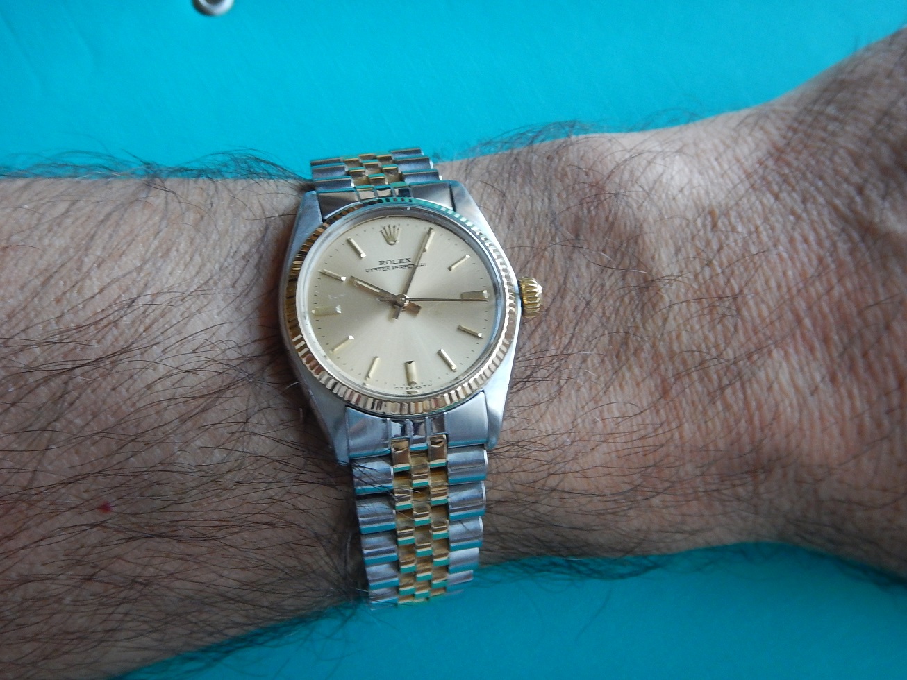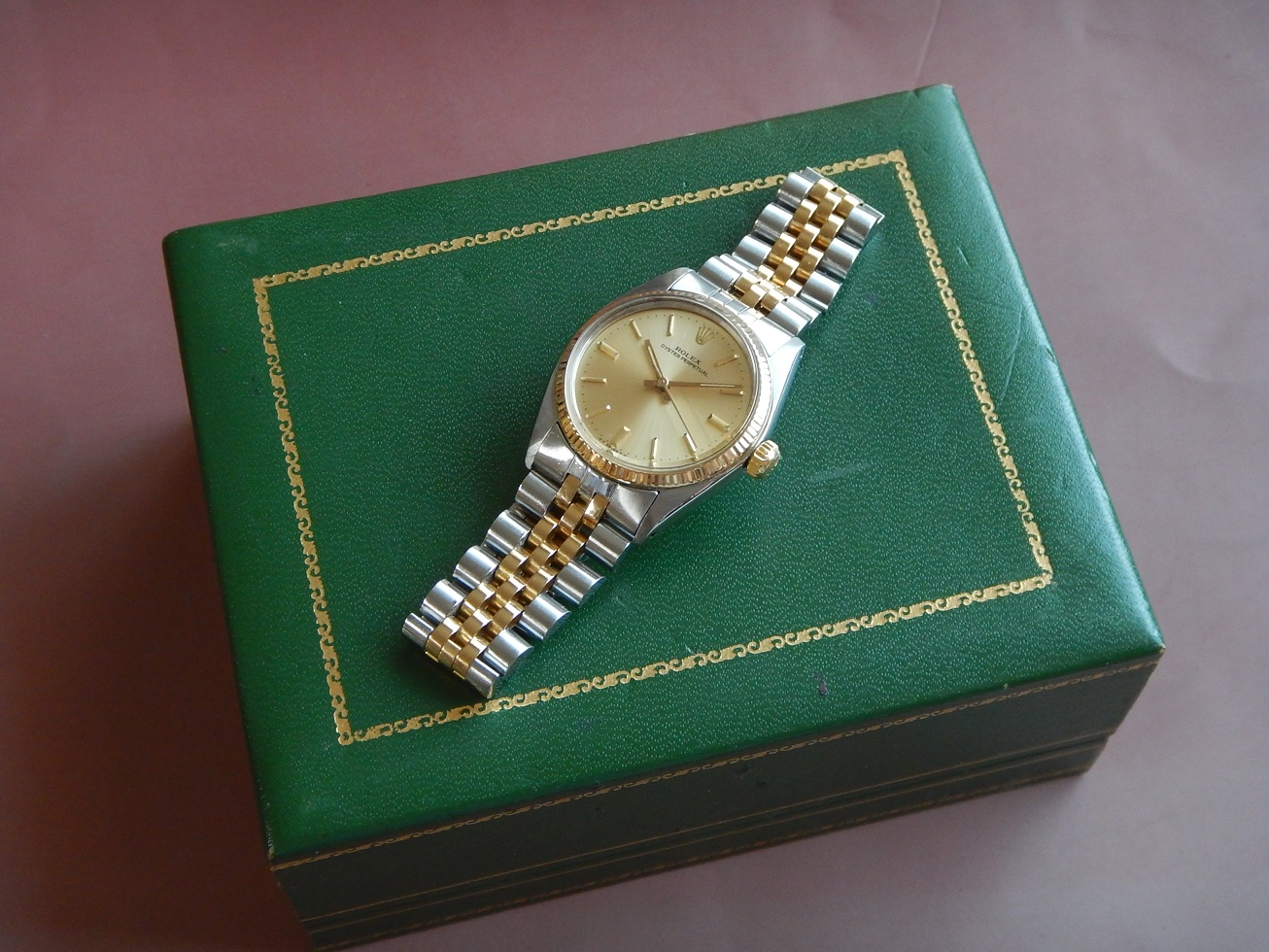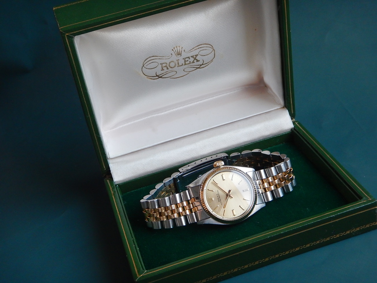 1977 ROLEX OYSTER PERPETUAL OR ACIER DANS SA BOÎTE SERVICE OK GARANTIE 2 ANS 4,355.00 € Catégorie : Montres de collection Contactez-nous Contactez-nous pour acheter 1977 ROLEX OYSTER PERPETUAL OR ACIER DANS SA BOÎTE SERVICE OK GARANTIE 2 ANS Votre nom Votre e-mail Votre numéro de téléphone Votre message (facultatif) Description LA PERSISTANCE DANS L’EXPLOIT DEPUIS 1905 Héritière de la maison Wilsdorf & Davis créée en 1905 par Hans Wilsdorf, la maison Rolex voit le jour en 1919 à Genève. Horloger inventif, Hans Wilsdorf parie dès ses débuts sur le développement des montres bracelets. Son premier grand succès commercial sera l’Oyster, la première montre étanche, dont il orchestre le lancement avec brio. Une deuxième invention majeure lui permettra d’asseoir sa réputation, le rotor à double oscillation qui allait rapidement équiper la plupart des montres bracelets mécaniques à remontage automatique. Depuis ses débuts fracassants, Rolex a su maintenir ses promesses grâce à des modèles robustes fiables. ROLEX OYSTER, UN BREVET VIEUX DE 70 ANS DÉPOSÉ PAR ROLEX En 1926, Rolex dépose deux brevets qui allaient rendre la marque incontournable, un modèle baptisé « Oyster » (en anglais « huitre »), référence à la capacité de ce mollusque à fermer sa coquille de façon hermétique en résistant à la pression du milieu marin : étanche grâce à un joint introduit dans une boîte, bloqué par un fond et une lunette vissés, et par un tube fileté vissé dans la boîte, tube par lequel la couronne de remontoir est à son tour vissée. Quelques mois après son lancement, elle acquerra son premier titre de gloire grâce à la nageuse Mercedes Gleitze qui traversa la Manche à la nage avec la fameuse montre au poignet. Une prouesse que Hans Wilsdorf s’empressa d’exploiter, allant même jusqu’à présenter dans des grands magasins certains de ces modèles « Oyster » immergés dans des aquariums. MONTRE DE COLLECTION !!! De tout le domaine horloger, la montre ancienne est certainement l’objet le plus collectionné. Les premières montres portables datent du début du XVIe siècle, quand les artisans horlogers se mirent à réaliser des réductions d’horloges de table, devenues transportables grâce à l’invention du ressort. Certains historiens pensent que le besoin d’une horloge mobile venait des riches marchands de la Renaissance. Ils avaient à connaître l’heure dans leur « voiture » qui leur tenait lieu de bureau. La montre de carrosse naquit de ce besoin. La montre pendentif, puis la montre de poche n’en seraient que la réduction. Les premières montres sont rarement signées. Ce n’est qu’en fin du XVIIe siècle qu’apparaissent quelques mouvements signés (sur les montres de grands horlogers du type Breguet, Leroy, Patek Philippe…). Au fil du XVIIIe siècle on trouve de plus en plus fréquemment une signature sur le cadran et sur le mouvement. Au XIXe on la trouve parfois sur le boîtier ou sur le couvercle intérieur. La signature de la montre est aujourd’hui un important critère pour le collectionneur car elle permet de situer précisément l’époque, le contexte et le lieu, car on dispose d’un nombre étonnant de renseignements sur certains horlogers. NE PAS CONFONDRE CHRONOGRAPHE ET CHRONOMÈTRE : Le chronographe est un appareil horaire, dans le cas particulier une montre, possédant une aiguille placée au centre du mouvement. Cette aiguille, nommée « trotteuse », peut être à volonté : mise en marche, arrêtée, puis ramenée au point de départ. Ces différentes « fonctions » sont opérées au moyen d’un mécanisme dit « de chronographe ». On confond assez souvent les termes de chronographe et de chronomètre (cependant un chronographe peut être aussi chronomètre, vous comprendrez …). Un chronomètre est une montre qui, observée dans différentes positions et à des températures diverses, donne des résultats de réglage suffisants pour obtenir un certificat officiel de marche (certificat de chronométrie en général délivré par le COSC : Contrôle Officiel Suisse des Chronomètres). Moralité, faites moi confiance… Cette Rolex Oyster Perpetual est un chronomètre certifié. DESCRIPTION ET CARACTÉRISTIQUES TECHNIQUES Dimensions : Largeur hors couronne de remontoir 30 mm, longueur totale 36,8 mm à l’extrémité des anses, et 10,5 mm d’épaisseur verre compris, modèle mixte (voir les photos). Boîtier : référence 6751, N° de série 5432368 (ce qui me permet de la dater exactement de 1977), boîtier en acier inoxydable poli brillant sur les côtés et la lunette cannelée en or 18 carats, et brossé sur le dessus des anses. La couronne de remontoir est vissée de façon à la protéger d’éventuels chocs qui pourraient l’endommager, car c’est LE point sensible : c’est par là qu’eaux et poussières peuvent pénétrer dans la boîte et abîmer le mouvement. Comme vous pouvez le constater sur les photos, l’ensemble est en superbe état, on voit que l’ancien propriétaire savait prendre soin de ses affaires. Cadran : De couleur champagne, état parfait, ses index en or appliqués offrent une grande lisibilité, une trotteuse centrale fluide et des aiguilles « bâtons » pour indiquer l’heure avec finesse dans le délicat « chemin de fer ». L’indication au bas du cadran sous l’index de 6h, avant et après « Swiss », indique que ce cadran est fabriqué par un sous-traitant de Rolex, la société Sigma qui a commencé à utiliser de l’or massif sur les aiguilles et les index. Il s’agit simplement de deux lettres grecques. Lors la crise du quartz dans les années 70, les manufactures suisses souhaitaient attirer l’attention sur le fait que leurs montres mécaniques faisaient appel à des métaux précieux de haute qualité afin de se distinguer des montres à quartz. Les « cadrans Sigma » se retrouvent également chez d’autres marques, par exemple Vac