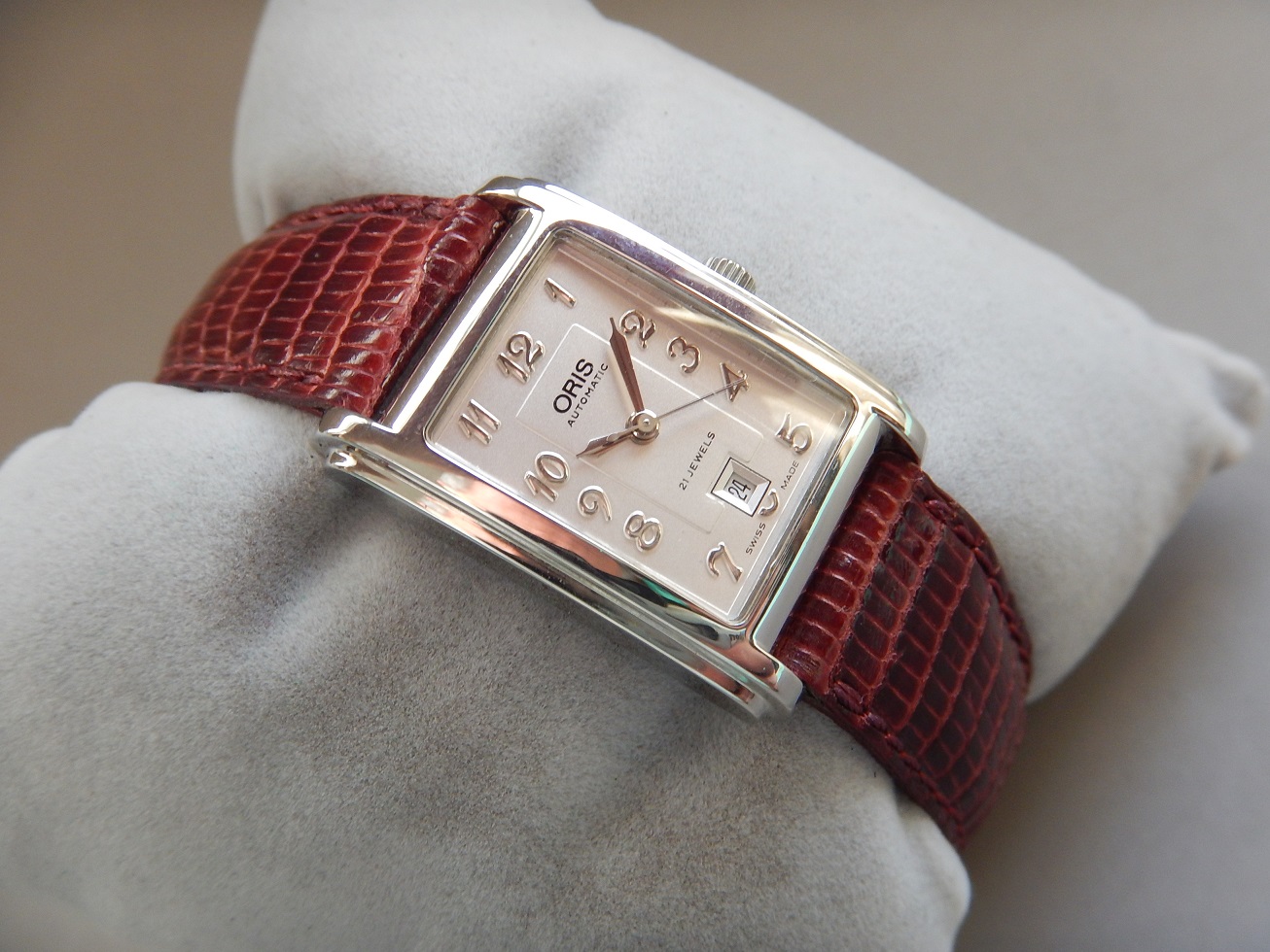 1990′ SUBLIME ORIS TANK LADY ACIER AUTOMATIC ETA 2671 DANS SON COFFRET TOP ÉTAT 370.00 € Catégorie : Montres de collection Contactez-nous Contactez-nous Votre nom Votre e-mail Votre numéro de téléphone Votre message (facultatif) Description HISTORIQUE DE LA MANUFACTURE Aux oreilles du néophyte, la sonorité d’Oris peut paraître exotique. C’est pourtant dans une contrée bâloise, le val de Waldenburg, que la marque fut fondée par deux Loclois, Paul Cattin et Georges Christian. Elle tire son nom d’un ruisseau qui coule près de Hölstein, siège de la marque depuis toujours, à quelques kilomètres de Bâle. C’est là que les deux horlogers rachètent en 1904 une ancienne firme récemment fermée et débutent une formidable aventure tant industrielle que technique. Cet héritage permet aujourd’hui à Oris de revendiquer sa place parmi les fabricants de montres exclusivement mécaniques. La qualité restant un souci des dirigeant, Oris obtient un bulletin de marche de l’observatoire chronométrique et astronomique de Neuchatel en 1968, fait rare pour les montres bracelets munies d’un échappement simplifié. Elle n’a jamais cédé à la tentation des mouvements à quartz ce qui est l’une de ses grandes particularités. Dans les années 1960, avec près de 800 employés, Oris figure parmi les dix principaux fabricants de montres suisses. Après une période difficile durant la décennie suivante, au cours de laquelle elle se verra intégré à ASUAG (Société générale de l’industrie horlogère suisse), la marque est rachetée en 1982 par l’équipe de direction. Dès lors, chose rare en horlogerie, Oris ne fabriquera plus que des montres mécaniques. Une nouvelle philosophie symbolisée aujourd’hui par un terme et un élément : « high-mech », inscrit sur le rotor rouge présent sur tous les modèles automatiques. LE DESIGN INTEMPOREL « TANK » : DEPUIS 1917, UNE MONTRE INSPIRÉE DES CHARS DE COMBAT Tenez-vous bien, ce modèle a été créé par Cartier en 1917 inspiré des chars de combat utilisés par l’Angleterre sous le nom de code « Tank » lors de la Bataille de la Somme du 15 Septembre 1916. Depuis cette époque, Cartier n’a jamais rien trouvé à changer à ce modèle intemporel et toujours à la mode. Modèle d’exception, commercialisé en 1919, elle fût fabriquée en plusieurs versions différentes dont l’allongée, la curvex, la cintrée, la chinoise, à guichet, l’asymétrique, la Tank Obus, la Tank basculante, la tank Américaine, la Tank Francaise, en chrono, des modèles uniques comme celle du Prince du Népal en 1934 en platine. La plus classique, la plus simple, la plus célèbre des montres. La Tank était également la montre de prédilection de John John Kennedy, de Jackie Kennedy, de Brigitte Bardot, ou encore de Claude François. Alain Delon la porte aussi dans le film « Le Flic » comme son metteur en scène Jean Pierre Melville. La Tank devient presque la norme, en fait, toutes les grandes maisons d’horlogerie se sont essayées à cette forme. Avec des retours réguliers dans la tendance, cette forme agréable sied parfaitement au poignet. Toujours raffinés, ces modèles ont leurs adeptes, en particulier les amateurs de montres fines. DESCRIPTION ET CARACTÉRISTIQUES TECHNIQUES Époque : Classique, sobre, intemporelle, voici la « Tank » ORIS des années 1990. Boîtier : en acier inoxydable avec le fond squelette pour admirer le « coeur du temps ». Rivalisant de fierté et d’élégance, ce modèle impressionne par son classicisme, sa sobriété et sa majesté. Couronne de remontoir et arrière signés. Dimensions : largeur 22,5 mm hors remontoir, 33,3 mm à l’extrémité des anses et 9,6 mm d’épaisseur verre compris, modèle femme. Verre : minéral, des micros rayures invisibles lorsqu’on l’a au poignet. Cadran : sublime, de couleur blanc « argile » avec des chiffres « Bréguet » appliqués en relief, des aiguilles « plumes » en acier poli. Mouvement : Les qualités d’un mouvement horloger imposent une fabrication sans faille. C’est pour cela que la marque a sélectionné les meilleurs mouvements suisses. Il s’agit la du même mouvement utilisé par Cartier pour certains modèles automatiques. Le Oris calibre 561 de base ETA 2671, corrigé par Oris, mécanique à remontage automatique dans les deux sens, à rotor sur roulement à billes, dispositif seconde d’arrêt et une réserve de marche de 38 h. Fonctions : heures, minutes, seconde, date à 6 H avec correcteur rapide, 28 rubis d’une fréquence de 28800 alt / heures et un réglage de précision à vis micrométrique « Etachron ». Il a fait l’objet d’une révision complète pour le garantir 2 ans en toute sécurité, il est fiable et précis. Notez que ce sont des frais que vous n’aurez pas à faire sachant qu’une révision complète pour ce genre de montre coûte autour de 220 € chez un horloger « raisonnable » comme moi. Bracelets : neuf, jamais utilisé, en cuir de lézard véritable fait main, de couleur bordeaux. 16 mm de largeur au niveau des entres cornes de la montre et 14 à la boucle d’origine signée Oris. Pour une taille maximale du poignet de 20 cm. Services : révisée et contrôlée par mes soins, vendue dans son coffret et son carton d’origines signés Oris. Observations : Amis collectionneurs, il est temps de se pencher sur ce rare garde temps avant que la fièvre inflationniste le rende intouchable lui aussi ! La Tank, un grand classique intemporel, une montre exclusive équipée d’un mouvement de haute tradition horlogère. Perfection technique et sens de l’esthétique, c’est l’esprit de la marque qui anime cette pièce d’exception. Si j’attache autant d’importance à tous ces détails, c’est qu’en 40 années de réparations de montres, il est rare d’en trouver dans des états aussi bien conservés. Produits similaires Montres de collectionYEMA TÉLÉVISION AUTOMATIQUE FE 3