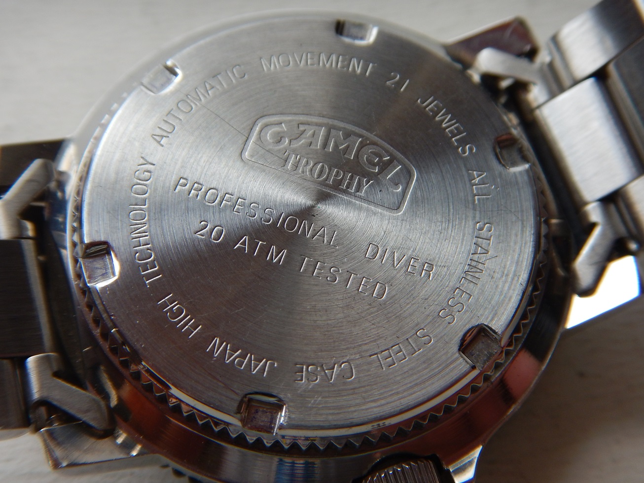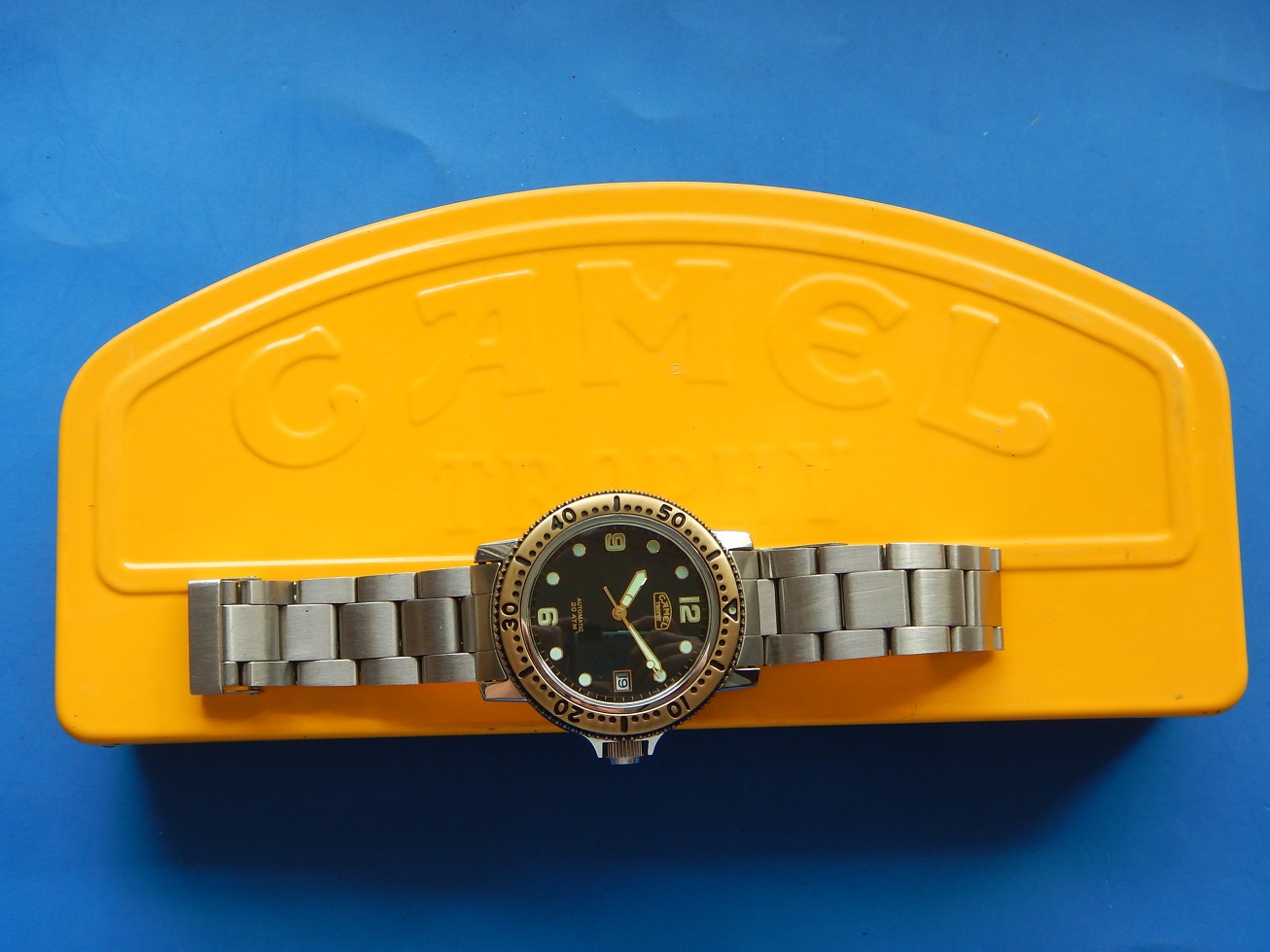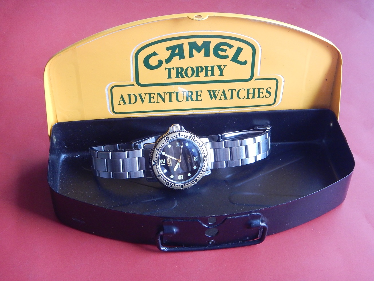 1992 STOCK NEUF NOS CAMEL TROPHY PROFESSIONNAL DIVER 20 ATM AUTO SÉRIE LIMITÉE 875.00 € Catégorie : Montres de collection Contactez-nous Contactez-nous pour acheter 1992 STOCK NEUF NOS CAMEL TROPHY PROFESSIONNAL DIVER 20 ATM AUTO SÉRIE LIMITÉE Votre nom Votre e-mail Votre numéro de téléphone Votre message (facultatif) Description UNE GRANDE AVENTURE DEPUIS 1980 L’histoire des montres Camel Trophy a commencé en 1986, mais ce n’est qu’en 1988 que les premiers modèles sont arrivés sur le marché. La responsabilité de la conception et de la fabrication de ces modèles est attribuée à la société Sector (Italie) et à EFA (France). Sector, fondé en 1973, était spécialisé en montres sportive (la société est encore active). Bien que les montres n’étaient qu’un moyen pour la RJ Reynolds Tobacco Company de vendre des cigarettes, elles ont réussi à gagner de grandes parts de marché (6e marque la plus vendue en Espagne en 1994). En 1993, le géant suisse Mondaine acquiert toutes les licences de la marque « Camel Trophy Adventure Watches ». Le Camel Trophy est issu de l’univers des expéditions Camel Trophy et développée sous licence pour proposer des « Adventure Watches » au design utilitaire, pensées pour le quotidien et l’évasion. Camel Trophy international, une compétition axée sur les véhicules qui s’est tenue chaque année entre 1980 et 2000 et qui consistait à utiliser des véhicules 4X4 sur des terrains difficiles. Hormis la première et la toute dernière de ces compétitions, Land Rover a fourni les équipes avec leurs véhicules, et au cours des vingt années d’implication de Land Rover dans le Camel Trophy, toute la gamme de véhicules Land Rover a été utilisée à un moment ou à un autre. Les équipes de chaque événement annuel étant toutes fournies avec le même modèle fortement modifié (par Land Rover Special Véhicules). Le Camel Trophy n’était pas exactement une course, ni un rallye, et se concentrait sur le fait d’être une aventure mondiale par l’homme et la machine dans des environnements difficiles ou impossibles. Il y avait donc des prix pour « l’esprit d’équipe » et les « tâches spéciales » ainsi qu’un « prix Land Rover ». LE « STYLE PLONGÉE » OU LA VRAIE PLONGÉE, EN SAVOIR PLUS SUR LA MONTRE DE PLONGÉE : Toute montre portant l’indication montre de plongée subit des tests correspondant, au minimum à des profondeurs de 100 mètres. Et en matière de sécurité, pas question de plaisanter avec les plongeurs professionnels. Donc, pour pouvoir prétendre à cette spécification la montre doit : – Être étanche à 100 mètres minimum. – Être lisible à 30 cm dans le noir absolu : ses chiffres doivent être luminescents. – Être éprouvée, c’est à dire que l’étanchéité de toutes les pièces a été testée en conditions réelles d’utilisation. – Posséder une lunette tournante unidirectionnelle à cliquets, avec une graduation au moins des 15 premières minutes et comportant un point de référence luminescent. – Posséder une aiguille des secondes permettant de constater à tout instant le fonctionnement de la montre. – Être antimagnétique, résistante aux chocs, aux chocs thermiques, aux atmosphères d’hélium. Le contrôle de chaque montre de plongée est ainsi divisé en essai d’homologation et d’épreuves à 100 %. Autrement dit, cette montre est faite pour la plongée (mais elle n’a pas été testée). En plongeant dans le monde des montres étanches, on comprendra qu’elles ne sont pas toutes faites pour prendre l’eau, et peut-être encore moins une douche. Dans le passé, lorsque vous parliez d’eau à un horloger il faisait tout de suite faire une moue de désapprobation. Hans Wilsdorf était un précurseur, l’idée qu’il eut en 1926, de fermer la couronne de remontoir d’une montre par vissage, nous semble aujourd’hui du meilleur bon sens. Avec le recul il est presque possible de dire que le progrès le plus significatif du XXe siècle dans le domaine de l’horlogerie est d’avoir réussi à rendre étanche les boîtes de montres. De nos jours, chaque marque propose dans sa collection au moins un modèle de plongée.Vous comprendrez que cette montre est une montre de collection qui a + de 50 ans et dont je déconseille fortement l’immersion (surtout la douche). DESCRIPTION et SOUS LE CAPOT Époque : de 1992. N.O.S, cette montre de plongée a été fabriquée très peu de temps (1 saison) en 1992. En raison de ce fait la montre est très rare et possède très peu d’exemplaires, surtout avec un mouvement automatique, cette lunette bronze et son cadran noir ! Une très grande qualité générale entre la conception du boîtier, du mouvement automatique et de son bracelet avec sa rallonge de plongée. En raison de son coût de fabrication, la marque de montre Mondaine (Suisse) ne l’a pas poursuivie quand ils ont repris la licence des montres CAMEL TROPHY en 1993. Boîtier : Design intemporel qui est parfaitement d’actualité même après même 35 ans de sa fabrication originelle ! En acier massif inoxydable avec le fond vissé, une lunette en bronze uni-directionnelle à cliquets anti-retour et une couronne de remontoir vissée pour une étanchéité à 20 ATM. L’ensemble est neuf, jamais utilisé, observez les photos, elles traduisent parfaitement son état. Dimensions : 38,3 mm de côté hors remontoir, 43,5 mm à l’extrémité des anses et 12,5 mm d’épaisseur verre compris, modèle pour homme. Verre : minéral, parfait, plat, légèrement bombé. Cadran : superbe, de couleur noire, des aiguilles et index luminescents (voir la photo dans le noir complet), le dateur à 3 h. Mouvement : Un Citizen Miyota 8215. Principaux concurrents de l’industrie horlogère suisse, les Japonais sont restés dans la mémoire collective comme des compétiteurs féroces. Fondée en 1918, la manufacture Citizen, est reconnue internationa