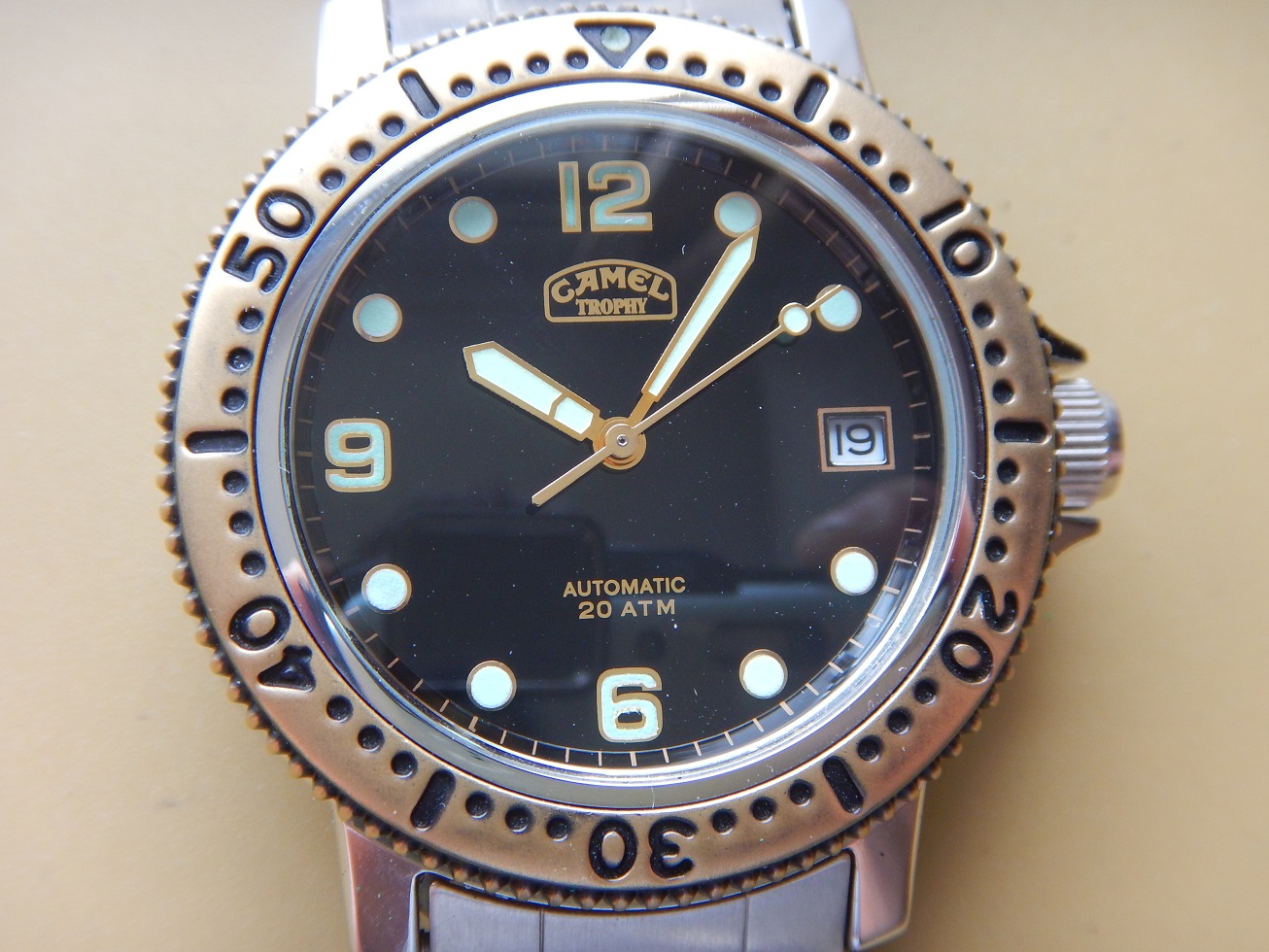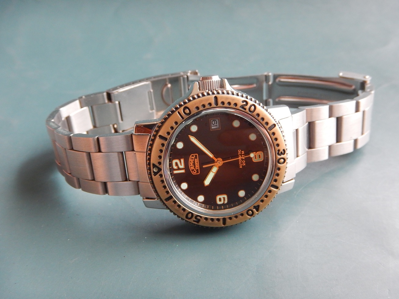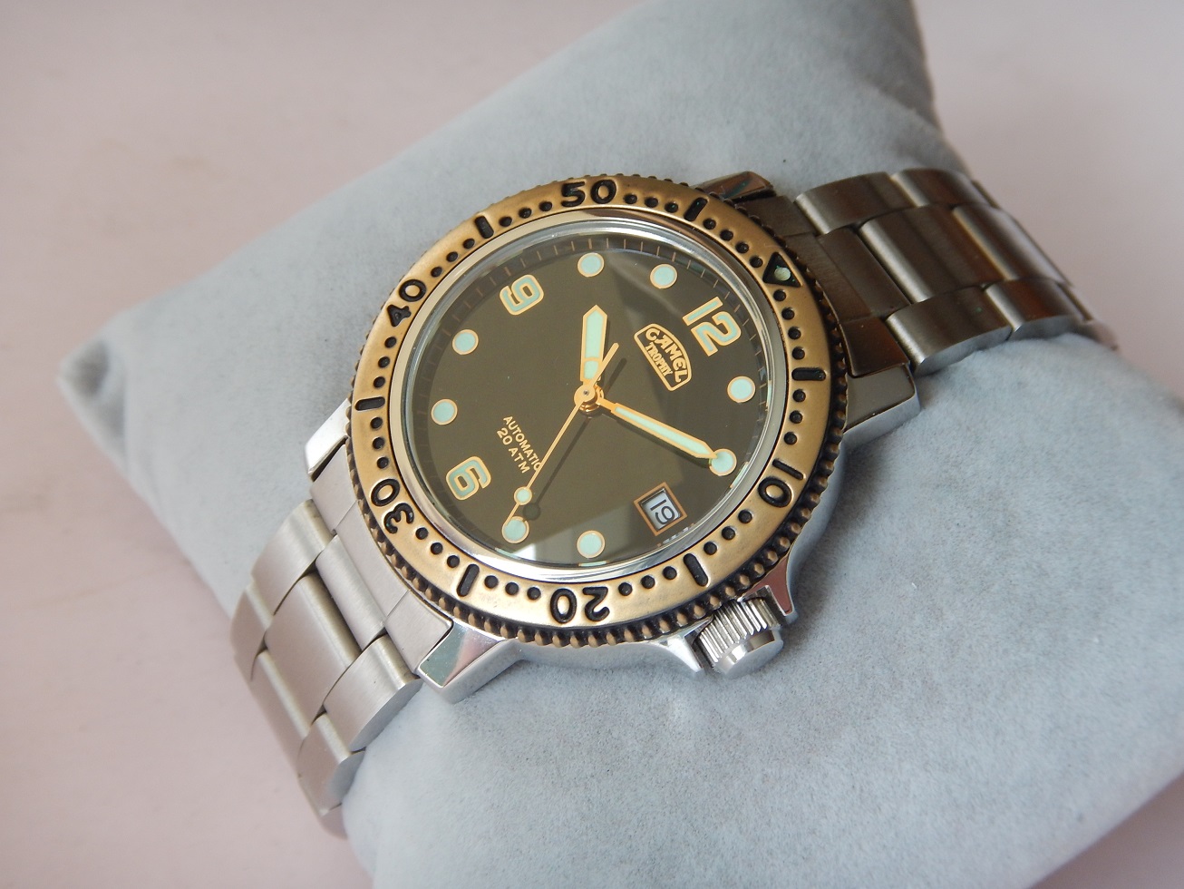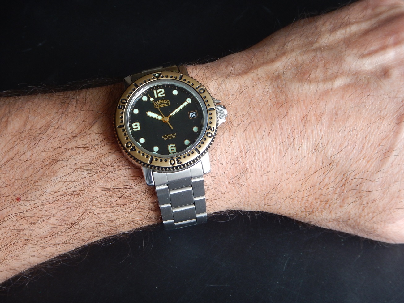 1992 STOCK NEUF NOS CAMEL TROPHY PROFESSIONNAL DIVER 20 ATM AUTO SÉRIE LIMITÉE 875.00 € Catégorie : Montres de collection Contactez-nous Contactez-nous pour acheter 1992 STOCK NEUF NOS CAMEL TROPHY PROFESSIONNAL DIVER 20 ATM AUTO SÉRIE LIMITÉE Votre nom Votre e-mail Votre numéro de téléphone Votre message (facultatif) Description UNE GRANDE AVENTURE DEPUIS 1980 L’histoire des montres Camel Trophy a commencé en 1986, mais ce n’est qu’en 1988 que les premiers modèles sont arrivés sur le marché. La responsabilité de la conception et de la fabrication de ces modèles est attribuée à la société Sector (Italie) et à EFA (France). Sector, fondé en 1973, était spécialisé en montres sportive (la société est encore active). Bien que les montres n’étaient qu’un moyen pour la RJ Reynolds Tobacco Company de vendre des cigarettes, elles ont réussi à gagner de grandes parts de marché (6e marque la plus vendue en Espagne en 1994). En 1993, le géant suisse Mondaine acquiert toutes les licences de la marque « Camel Trophy Adventure Watches ». Le Camel Trophy est issu de l’univers des expéditions Camel Trophy et développée sous licence pour proposer des « Adventure Watches » au design utilitaire, pensées pour le quotidien et l’évasion. Camel Trophy international, une compétition axée sur les véhicules qui s’est tenue chaque année entre 1980 et 2000 et qui consistait à utiliser des véhicules 4X4 sur des terrains difficiles. Hormis la première et la toute dernière de ces compétitions, Land Rover a fourni les équipes avec leurs véhicules, et au cours des vingt années d’implication de Land Rover dans le Camel Trophy, toute la gamme de véhicules Land Rover a été utilisée à un moment ou à un autre. Les équipes de chaque événement annuel étant toutes fournies avec le même modèle fortement modifié (par Land Rover Special Véhicules). Le Camel Trophy n’était pas exactement une course, ni un rallye, et se concentrait sur le fait d’être une aventure mondiale par l’homme et la machine dans des environnements difficiles ou impossibles. Il y avait donc des prix pour « l’esprit d’équipe » et les « tâches spéciales » ainsi qu’un « prix Land Rover ». LE « STYLE PLONGÉE » OU LA VRAIE PLONGÉE, EN SAVOIR PLUS SUR LA MONTRE DE PLONGÉE : Toute montre portant l’indication montre de plongée subit des tests correspondant, au minimum à des profondeurs de 100 mètres. Et en matière de sécurité, pas question de plaisanter avec les plongeurs professionnels. Donc, pour pouvoir prétendre à cette spécification la montre doit : – Être étanche à 100 mètres minimum. – Être lisible à 30 cm dans le noir absolu : ses chiffres doivent être luminescents. – Être éprouvée, c’est à dire que l’étanchéité de toutes les pièces a été testée en conditions réelles d’utilisation. – Posséder une lunette tournante unidirectionnelle à cliquets, avec une graduation au moins des 15 premières minutes et comportant un point de référence luminescent. – Posséder une aiguille des secondes permettant de constater à tout instant le fonctionnement de la montre. – Être antimagnétique, résistante aux chocs, aux chocs thermiques, aux atmosphères d’hélium. Le contrôle de chaque montre de plongée est ainsi divisé en essai d’homologation et d’épreuves à 100 %. Autrement dit, cette montre est faite pour la plongée (mais elle n’a pas été testée). En plongeant dans le monde des montres étanches, on comprendra qu’elles ne sont pas toutes faites pour prendre l’eau, et peut-être encore moins une douche. Dans le passé, lorsque vous parliez d’eau à un horloger il faisait tout de suite faire une moue de désapprobation. Hans Wilsdorf était un précurseur, l’idée qu’il eut en 1926, de fermer la couronne de remontoir d’une montre par vissage, nous semble aujourd’hui du meilleur bon sens. Avec le recul il est presque possible de dire que le progrès le plus significatif du XXe siècle dans le domaine de l’horlogerie est d’avoir réussi à rendre étanche les boîtes de montres. De nos jours, chaque marque propose dans sa collection au moins un modèle de plongée.Vous comprendrez que cette montre est une montre de collection qui a + de 50 ans et dont je déconseille fortement l’immersion (surtout la douche). DESCRIPTION et SOUS LE CAPOT Époque : de 1992. N.O.S, cette montre de plongée a été fabriquée très peu de temps (1 saison) en 1992. En raison de ce fait la montre est très rare et possède très peu d’exemplaires, surtout avec un mouvement automatique, cette lunette bronze et son cadran noir ! Une très grande qualité générale entre la conception du boîtier, du mouvement automatique et de son bracelet avec sa rallonge de plongée. En raison de son coût de fabrication, la marque de montre Mondaine (Suisse) ne l’a pas poursuivie quand ils ont repris la licence des montres CAMEL TROPHY en 1993. Boîtier : Design intemporel qui est parfaitement d’actualité même après même 35 ans de sa fabrication originelle ! En acier massif inoxydable avec le fond vissé, une lunette en bronze uni-directionnelle à cliquets anti-retour et une couronne de remontoir vissée pour une étanchéité à 20 ATM. L’ensemble est neuf, jamais utilisé, observez les photos, elles traduisent parfaitement son état. Dimensions : 38,3 mm de côté hors remontoir, 43,5 mm à l’extrémité des anses et 12,5 mm d’épaisseur verre compris, modèle pour homme. Verre : minéral, parfait, plat, légèrement bombé. Cadran : superbe, de couleur noire, des aiguilles et index luminescents (voir la photo dans le noir complet), le dateur à 3 h. Mouvement : Un Citizen Miyota 8215. Principaux concurrents de l’industrie horlogère suisse, les Japonais sont restés dans la mémoire collective comme des compétiteurs féroces. Fondée en 1918, la manufacture Citizen, est reconnue internationa