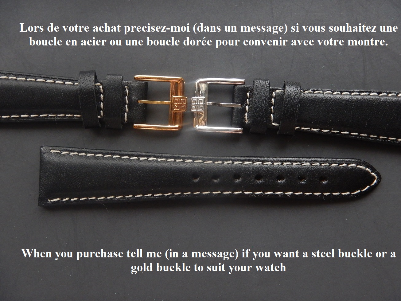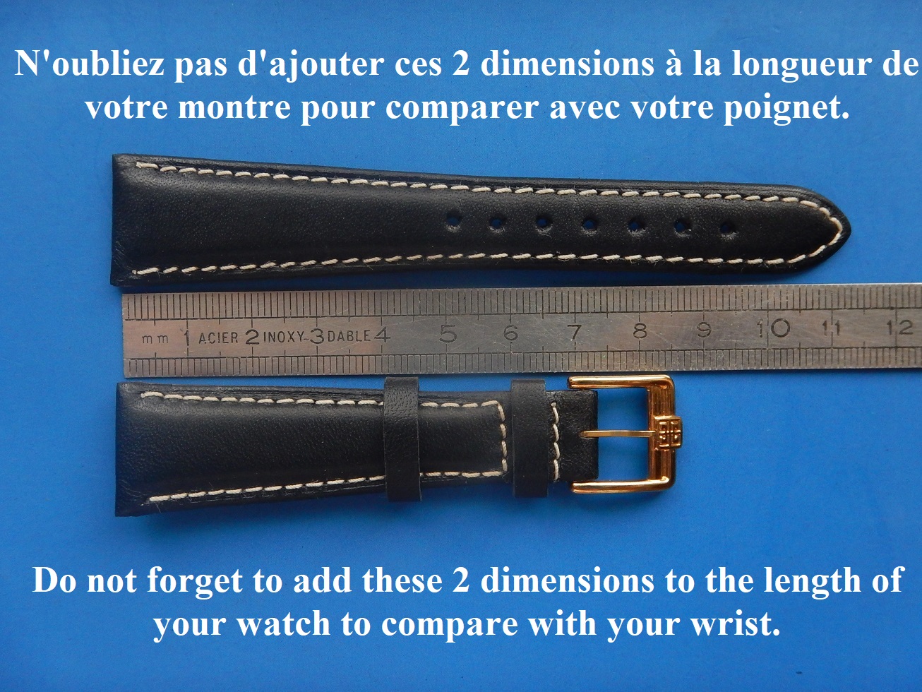 20 mm LUXE GIVENCHY BRACELET VEAU BOX VÉRITABLE NOIR COUSU 14 mm A LA BOUCLE 35.00 € Catégories : Bracelets, Bracelets Cuirs Contactez-nous Contactez-nous pour acheter 20 mm LUXE GIVENCHY BRACELET VEAU BOX VÉRITABLE NOIR COUSU 14 mm A LA BOUCLE Votre nom Votre e-mail Votre numéro de téléphone Votre message (facultatif) Description DIMENSION 20 mm AU NIVEAU DES ANSES DE LA MONTRE ET 14 MM A LA BOUCLE LE BOX : Le box est un cuir de veau tanné au chrome. Le tannage au chrome (ou au sel de chrome) s’oppose au tannage végétal. Le box est un cuir assez fin, souple et lisse ou un peu grainé. Rappelons que l’on parle de cuir lisse quand les grains sont si fins qu’on ne les distingue pas facilement. L’apparence est donc uniforme et lisse. Le box ou box-calf un cuir qui a les qualités que l’on demande à un cuir : la souplesse et la résistance, en plus de la finesse. C’est sans doute pour cela qu’Hermès a choisi le box-calf pour son sac Kelly. Ce bracelet Givenchy est en cuir véritable de veau lisse de couleur noire, avec une couture blanche, très résistant, d’une souplesse et d’un confort incomparable. Un bracelet sobre, discret et résistant, il conviendra à merveille à tous types de montres. Il s’adapte sur toutes les montres à anses à pompes. Même une combinaison de grande chaleur, d’humidité et de transpiration n’a aucun effet sur l’élasticité et la forme, ainsi que sa souplesse et son aspect racé de ces bracelets en cuir véritable. Afin de répondre à ces exigences, les matériaux sont sélectionnés avec soin et font l’objet d’une finition parfaite. Notez que ce bracelet fait 20 mm au niveau des entres cornes de la montre, et 14 mm au niveau de sa boucle. Sa longueur est prévue pour tous types de poignet grâce au réglage de l’ardillon avec les trous du cuir. La partie du bracelet coté « trous » fait 11 cm de long au total et l’autre partie fait 7 cm sans la boucle, pour savoir s’il conviendra à votre poignet il faut comparer ces dimensions avec l’ancien bracelet ou ajouter la longueur de la montre pour l’imaginer à votre poignet. Produits similaires Bracelets19 mm BRACELET YEMA NAVYGRAF ACIER BOUCLE DÉPLOYANTE N.O.S. 70 / 80 110.00 € Lire la suite Bracelets métal24 25 26 27 28 mm SOLIDE BRACELET ROWI ACIER SUR BOUCLE DÉPLOYANTE IDEAL YEMA 55.00 € Lire la suite Bracelets30 mm BRACELET TISSOT SEVEN ACIER 2236 40731 POUR 44656/01 OU 46658/01 = DYNAMIC OMEGA 130.00 € Lire la suite Bracelets18 19 20 MM BRACELET PRIMA PLANA N.O.S. PLAQUÉ OR ROSE BOUCLE DÉPLOYANTE 149.00 € Lire la suite