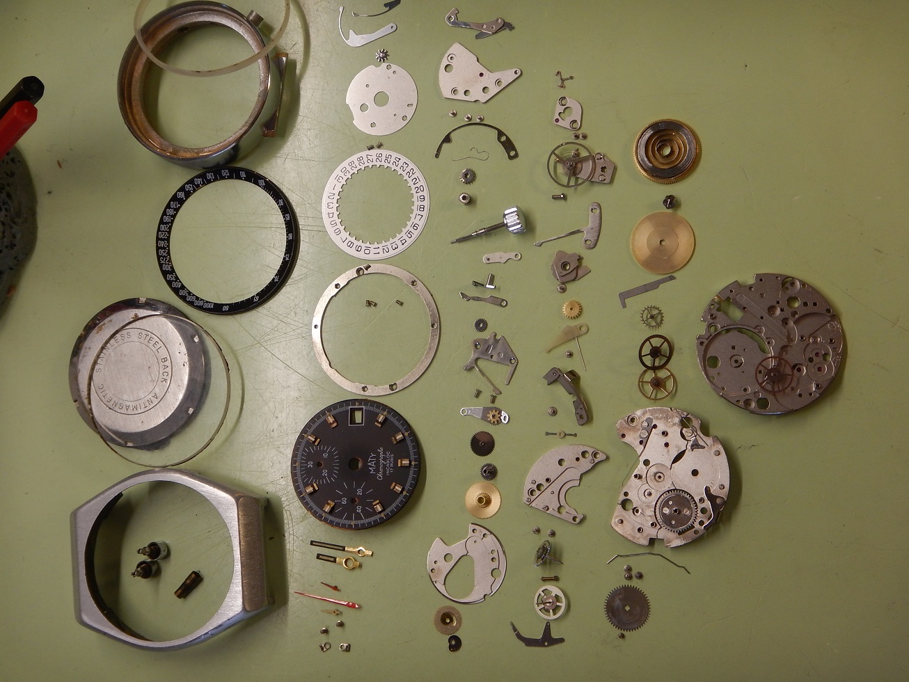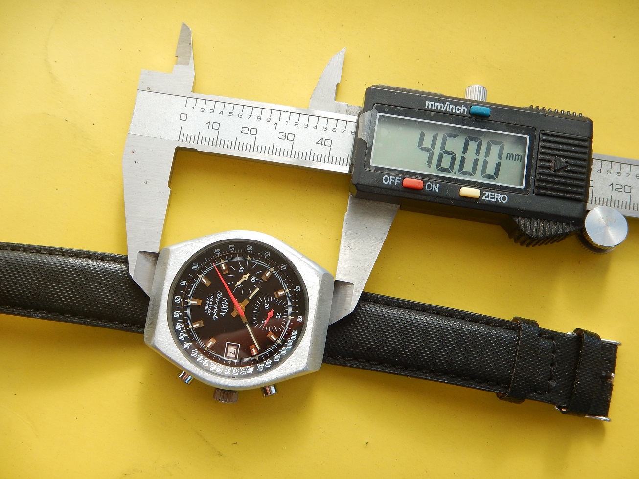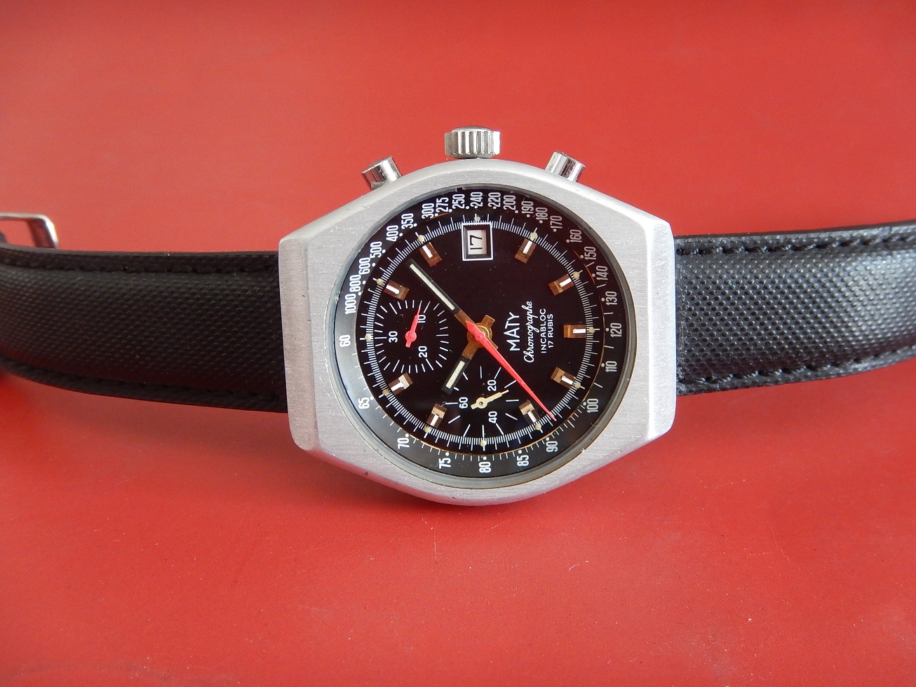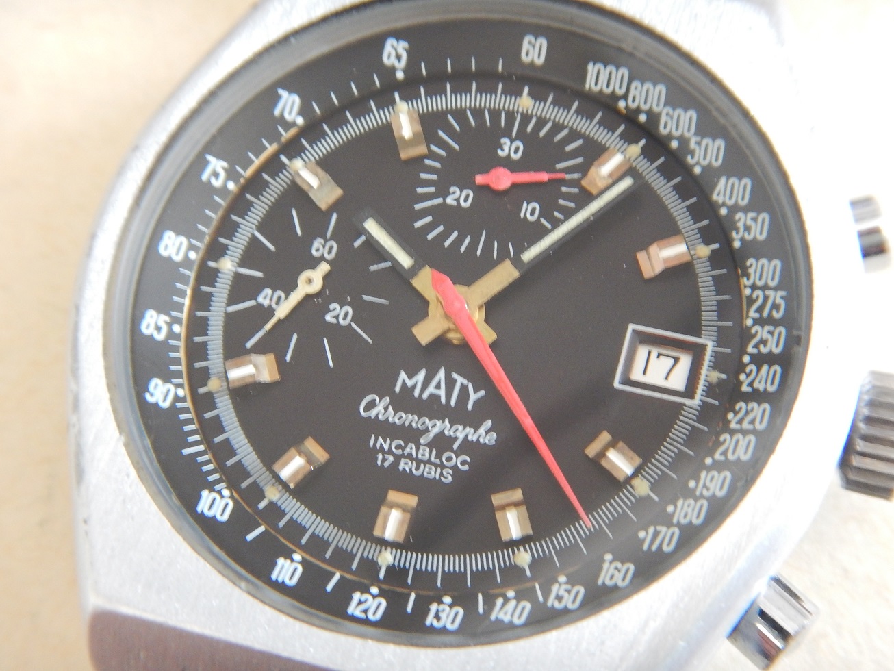 ANNÉES 80 MASSIF CHRONO MATY VALJOUX 7765 SUPERBE ÉTAT SERVICE OK GARANTIE 2 ANS 885.00 € Catégorie : Montres de collection Contactez-nous Contactez-nous pour acheter ANNÉES 80 MASSIF CHRONO MATY VALJOUX 7765 SUPERBE ÉTAT SERVICE OK GARANTIE 2 ANS Votre nom Votre e-mail Votre numéro de téléphone Votre message (facultatif) Description MATY DEPUIS 1952 C’est en 1951 que MATY a pris son envol. Peu de chapraisiens le savent, mais l’entreprise est née aux Chaprais un quartier de Besançon, dans la maison familiale située 7 rue Jeanneney. Natif de la ville de Besançon, à l’époque capitale de l’horlogerie française, c’est naturellement vers ce savoir-faire bisontin que Gérard Mantion s’est d’abord tourné, à l’âge de 24 ans. Manquant de moyen pour ouvrir une boutique, Gérard Mantion et son épouse Elyane se lancent dans la vente par correspondance en éditant un premier catalogue. Une idée audacieuse pour l’époque ! C’était alors inédit en France ! Certains précisent que c’est au premier étage qu’il installe sa société. D’autres que c’est dans un garage au fond de la propriété, la maison existe toujours. Le premier catalogue contient 12 pages présentant 67 modèles de montres pour hommes et femmes. Dès l’année 1952, il baptise sa société du nom de Maty. Il assure sa publicité par des petites annonces qui paraissent dans Le Chasseur Français.. Par la suite, Maty propose de la joaillerie en plus de l’horlogerie. En 1960, la société s’installe au 25 de l’avenue Fontaine-Argent, dans un petit immeuble encore existant. La bijouterie est ajoutée à la vente des montres et la société les fabriquera directement à partir de 1975. En 1968, Maty quitte ses locaux de l’avenue Fontaine-Argent pour ceux, actuels, du boulevard Kennedy. 25 ans plus tard, en 1993, Maty ouvre sa bijouterie emblématique située place de l’Opéra à Paris. Aujourd’hui l’entreprise compte une quarantaine de bijouteries en France, en propre et en affiliation. LES MONTRES MILITAIRES, DE SPORT OU DE NAVIGATION : C’est sans doute la navigation maritime et la résolution du problème de la longitude qui auront été le moteur le plus puissant du progrès de l’horlogerie de précision. Une longue histoire lie les marins aux montres depuis la découverte, par John Harrison en 1735, du calcul de la longitude par le moyen des chronomètres de précision. Sans la montre, impossible de se situer en mer, elle est devenue l’outil indispensable aux expéditions de découvertes. Plus tard, le chemin de fer, avec ses horaires précis étendus à l’échelle des continents et ses convois qui s’entremêlent et se croisent, en a fait l’attribut obligatoire du mécanicien, de l’ingénieur et du voyageur. A cet égard, la guerre de 1914-1918 a le mérite de démontrer où se situe exactement les besoins, on a vu s’entamer une modification des comportements avec une généralisation des montres bracelets. La navigation, la guerre, l’automobile, l’aviation, les jeux Olympiques enfin lui offriront ses lettres de noblesses. Tous ces éléments ont marqué l’histoire horlogère. LE CHRONOGRAPHE La vie moderne dans ses trépidantes manifestations, ne se contente plus de la minute ou de la seconde, elle dissèque l’unité de temps pour pouvoir apprécier les infimes durées dont elle a besoin. Il est important donc de mesurer les durées avec une rigueur plus accentuée, et vous qui portez à votre bras une montre chronographe, savez-vous toute la somme d’ingéniosité qu’a dû déployer une pléiade de chercheurs et d’horlogers pour adapter à un mouvement, ces mécanismes subtils prêts à obéir à vos réactions dans la fraction de seconde ??? Dociles, les aiguilles se mettent en marche, elles compteront pour vous les minutes et les heures et s’arrêteront à l’instant choisi : leurs positions mêmes définiront la durée que vous avez voulu évaluer. NE PAS CONFONDRE CHRONOGRAPHE ET CHRONOMÈTRE : Le chronographe est un appareil horaire, dans le cas particulier une montre, possédant une aiguille placée au centre du mouvement. Cette aiguille, nommée « trotteuse », peut être à volonté : mise en marche, arrêtée, puis ramenée au point de départ. Ces différentes « fonctions » sont opérées au moyen d’un mécanisme dit « de chronographe ». On confond assez souvent les termes de chronographe et de chronomètre (cependant un chronographe peut être aussi chronomètre, vous comprendrez …). Un chronomètre est une montre qui, observée dans différentes positions et à des températures diverses, donne des résultats de réglage suffisants pour obtenir un certificat officiel de marche (certificat de chronométrie en général délivré par le COSC : Contrôle Officiel Suisse des Chronomètres). Moralité, faites moi confiance… Ce chrono est un chronographe. DESCRIPTION ET CARACTÉRISTIQUES TECHNIQUES Période de fabrication : années 80. Dimensions : modèle de grande taille pour cette époque, conçu pour être efficace dans toutes les circonstances, largeur 40,50 mm hors remontoir, longueur totale 46 mm à l’extrémité des anses, et 13,85 mm d’épaisseur verre compris, modèle pour homme. Boîtier : en superbe état, en aluminium, brossé, avec le fond vissé en acier inoxydable. Une silhouette sportive et intemporelle, de forme tonneau. Cadran : il est noir couplé, notre chrono possède deux compteurs, des aiguilles heures et minutes noires de type « bâtons » avec une partie « squelette » luminescente. La trotteuse centrale du chrono est de couleur rouge comme celle du compteur des minutes à midi sur 30. Le compteur de gauche avec une aiguille blanche est celui de la trotteuse permanente sur 60 secondes. Observez la beauté et la précision des « chemins de fer » de l’échelle tachymétrique. Verre : minéral (en verre), plat, neuf, je l’ai remplacé lors de ma révision complète. Mouvement : mécani