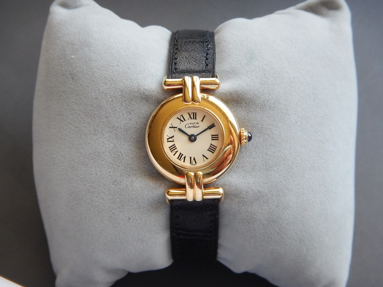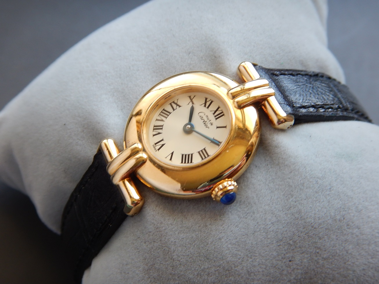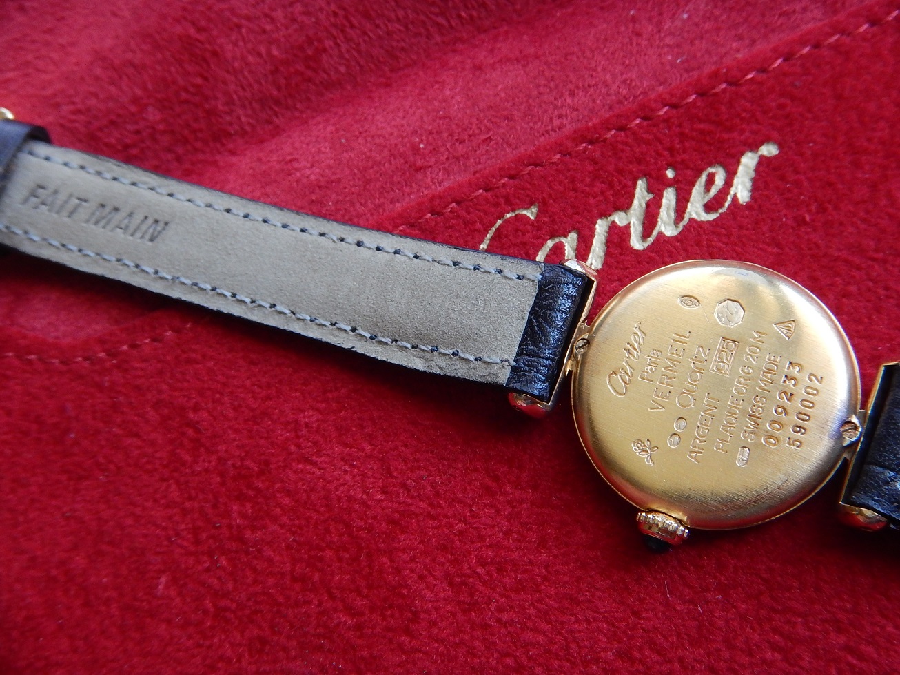 ANNÉES 90 CARTIER COLISÉE MUST VERMEIL DANS SA POCHETTE SUPERBE ÉTAT GARANTIE 1,630.00 € Catégorie : Montres de collection Contactez-nous Contactez-nous pour acheter ANNÉES 90 CARTIER COLISÉE MUST VERMEIL DANS SA POCHETTE SUPERBE ÉTAT GARANTIE Votre nom Votre e-mail Votre numéro de téléphone Votre message (facultatif) Description CARTIER L’AMBASSADEUR DU LUXE Dès le début du XXe siècle, la célèbre joaillerie parisienne s’impose dans le monde de l’horlogerie avec des montres qui susciteront un culte, comme la Santos ou la Tank. Aujourd’hui la Panthère, la Pasha et les Must continuent de fasciner les femmes et les hommes du monde entier. Louis-François Cartier a fondé sa célèbre joaillerie en 1847, mais il faudra attendre 1898 pour que l’illustre maison développe réellement une activité horlogère. C’est à cette date que Louis-François Cartier s’associe avec son père. Puis en 1907, il commence à travailler avec Edmond Jaeger. Les deux hommes sont persuadés du succès futur des montres-bracelets. Quand en 1906 le pilote brésilien Alberto Santos-Dumont réalise ses premiers exploits en aéroplane, une montre Cartier et fixée à son poignet gauche. Le modèle Santos va propulser Cartier parmi les plus grandes signatures de l’horlogerie. Inspirée des chars d’assaut américains de la première guerre mondiale, la Tank, commercialisée en 1919, connaît également un succès phénoménal et consolide la légende naissante de la marque. Paris, Londres, New York : l’empire désormais dirigé par les trois frères Cartier franchit les frontières. Des montres de prestige comme la Vendôme et la Tortue seront les vedettes de l’avant guerre. En 1942, à la mort de ses deux frères, Pierre Cartier se voit confié la direction de la maison à Paris. Il va privilégier l’image de la marque Cartier en équipant ses montres de mouvements fabriqué par de grands horlogers tels que Patek Philippe, Vacheron Constantin ou Audemars Piguet … Dans les années 80, Cartier réédite ses modèles légendaires : Tank, Vendôme, Santos, Tortue. Mécaniques ou à quartz, elles sont équipées de mouvements Cartier. Et pour bien prouver qu’il est toujours l’ambassadeur du luxe et de la qualité, Cartier persiste et signe avec sa sublime Pasha, en or 18 carats, avec calendrier perpétuel. LES « MUST DE CARTIER », DU HAUT DE GAMME ABORDABLE Dans une période où Cartier (et comme toutes les marques de cette époque) « battait un peu de l’aile » entre 1975 et 1983, le monde de l’horlogerie est frappé de plein fouet par l’invasion des montres digitales à bas prix et révolutionnaires, avec calculatrice, alarme, chrono, compte à rebours et autres complications électroniques. Cartier est obligé de faire des montres plus abordables pour faire revenir la clientèle dans le luxe. En 1973, alors que Robert Hocq est nommé président de la société, Cartier frappe un nouveau grand coup en commercialisant ses incontournables Must. Par la suite la maison s’est vraiment internationalisée dans les années 1980, sous l’impulsion de son président d’alors, Alain-Dominique Perrin. Ce dernier, grâce notamment au lancement des « must », en fait des articles plus accessibles, fait « décoller » la marque, jusqu’alors cantonnée dans son rôle de fournisseur des têtes couronnées d’Europe, depuis ce fût une affaire extrêmement profitable qui releva Cartier dans ces moments difficiles. DESCRIPTION ET CARACTÉRISTIQUES TECHNIQUES Époque : Classique, sobre, intemporelle, voici la Colisée authentique Cartier des années 1990. Boîtier : une montre féminine au design intemporel et raffiné, incarnant la subtilité et l’élégance, en vermeil (argent plaqué or 20 microns) avec le fond arrière signé. Rivalisant de fierté et d’élégance, folie merveilleuse, d’une sophistication insensée, ce modèle impressionne par son classicisme, sa sobriété et sa majesté. Avec ses deux anses à double jonc fixées à 12h et 6h, la leçon d’élégance est parachevée par une couronne de remontoir perlée ornée d’un saphir cabochon. Observez bien les photos, l’ensemble est dans un superbe état pour une dame de presque 30 ans. Dimensions : largeur 24 mm hors remontoir, 32,6 mm à l’extrémité des anses et 5,5 mm d’épaisseur verre compris, modèle femme. Verre : minéral, plat, neuf, remplacé lors de ma révision complète. Cadran : sublime, signe distinctif des cadrans de la marque, de couleur blanche, les aiguilles « glaives » en acier bleui indiquent l’heure sur des chiffres Romains. Notez l’inscription de la marque Cartier dans la petite barre du chiffres X qui nous rassure sur l’authenticité de la montre. Mouvement : Les qualités d’un mouvement horloger imposent une fabrication sans faille. C’est pour cela que la marque a sélectionné les meilleurs mouvements suisses, le Cartier 690, électronique à quartz, le haut de gamme du quartz, 8 rubis (beaucoup pour un quartz), signé Cartier, il a fait l’objet d’une révision complète pour le garantir 2 ans en toute sécurité, il est fiable et précis. Notez que ce sont des frais que vous n’aurez pas à faire sachant qu’une révision complète pour ce genre de montre coûte autour de 150 € chez un horloger « raisonnable » comme moi, chez Cartier comptez plus du double sans parler du délai. Bracelets : en cuir de veau véritable fait main, de couleur noire. 12 mm de largeur au niveau des entres cornes de la montre et 12 à la boucle d’origine Cartier, pour un poignet d’une taille maximale de 18 mm, boucle d’origine Cartier. Services : révisée et contrôlée par mes soins, vendue dans sa pochette en velours d’origine signée Cartier. Observations : Originale par son boîtier rond et ses attaches intégrées horizontales, elle peut être une alternative aux modèles plus classiques de la Maison. Ici, nous avons le meilleur des mondes : une Must, donc un