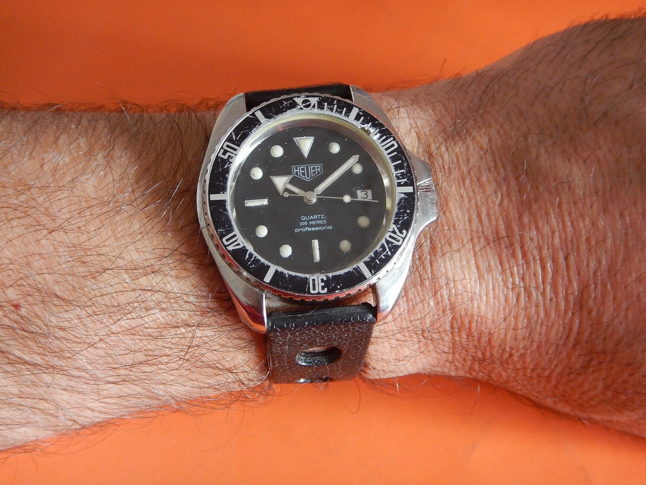 FIN 70 HEUER 200m PROFESSIONAL DIVER 980.006 GARANTIE 2 ANS MONNIN CASE 970.00 € Catégorie : Montres de collection Contactez-nous Contactez-nous pour acheter FIN 70 HEUER 200m PROFESSIONAL DIVER 980.006 GARANTIE 2 ANS MONNIN CASE Votre nom Votre e-mail Votre numéro de téléphone Votre message (facultatif) Description L’HISTOIRE DE HEUER : L’AVANT GARDE INSPIRE LA TECHNOLOGIE Dès 1860, date de création de la marque à St Imier dans le Jura Suisse, Edouard Heuer fonde son atelier horloger afin de mettre au point les instruments de mesure du temps les plus précis et les plus fiables qui soient. Très vite couronnée de succès, son entreprise se fait tout naturellement un nom dans la compétition sportive de haut niveau, en déposant des brevets de système de chronométrage toujours plus performant et perfectionnés comme le pignon oscillant qui reste aujourd’hui la base de la majorité des chronographes vendus dans le monde. En 1985, le groupe TAG (Technique d’Avant-Garde), propriétaire de l’écurie de formule 1 Mc Laren, rachète la marque Heuer qui entame alors sa spectaculaire ascension avant de rejoindre, en 1999, le pôle Montres et Joaillerie du N° 1 mondial du luxe : LVMH. Depuis les années 50 les montres Heuer sont les garde-temps Suisse digne de tous les superlatifs dans le domaine du sport et de l’élégance ainsi que les icônes absolues d’un succès fondé sur la force mentale et une attitude sportive envers la vie. Que ce soit au poignet du joueur de golf n°1 au monde Tiger Woods ou de la légende de F1 Ayrton Senna, d’une star de Hollywood comme Matt Damon (The Bourne Supremacy) ou d’un CEO aux responsabilités importantes, la marque est devenue symbole de statut social universellement reconnu, au design symbolique et à l’architecture définie par la précision, à la différence de toute autre montre de sport jamais réalisée. Dans les années 50/60, la vague extraordinaire des sports de mer, l’intérêt considérable porté à la pêche et aux explorations sous-marines ont incité la fabrique à créer une montre capable de satisfaire aux exigences les plus sévères qu’imposent certaines conditions de temps, de lieu, de travaux et de température. Aujourd’hui TAG Heuer est la référence indiscutable dans les montres chronographe de prestige et le quatrième acteur mondial du marché horloger de luxe. LES PREMIÈRES PLONGEUSES DE HEUER L’histoire de la fabrication des montres de plongée Heuer a commencé par la participation de Jack Heuer à un salon international des articles de sport, qui proposait des équipements et produits de plongée. Les concessionnaires américains se plaignaient des difficultés qu’ils avaient à trouver des montres de plongée de marques privées, le principal problème étant la moyenne qualité des marques disponibles. Selon Jack Heuer, « Cela m’a donné l’idée d’essayer de pénétrer ce marché avec une gamme de montres de plongée robustes de style Rolex, avec des mouvements à quartz, qui éviterait de sur-utiliser la couronne de remontoir comme c’était inévitable avec les mouvements automatiques. À notre grande surprise, nos nouvelles montres de plongée ont été très bien accueillies par le marché. » C’était en 1978, la référence 844 (mécanique à remontage automatique) et 980.006 (à quartz) furent le fleuron de ces tout premiers modèles. Ces montres de plongée Heuer étaient étanches jusqu’à 200 mètres et utilisaient soit des mouvements à quartz (celle que je propose aujourd’hui), soit des mouvements mécaniques à remontage automatique. Le mot « Professional » sur le cadran signifiait que, plutôt que d’être conçues pour les nageurs amateurs, les marins et les surfeurs, les montres étaient construites pour ceux qui voyaient réellement la plongée comme une passion. La plongée était devenue un passe-temps populaire dans les années 60 et 70, et Jack Heuer disait « à la fin des années 1970, les concessionnaires qui vendaient du matériel de plongée avaient besoin de montres de plongée fiables et abordables ». À la fin des années 70, le top des montres de plongée c’était la Rolex Submariner, ce fut le point de départ pour la gamme de montres de plongée que Jack Heuer développerait. Une différence significative c’était que la plupart des premières montres de plongée Heuer utilisaient des mouvements à quartz. Elles offraient une meilleure précision que leurs homologues mécaniques et moins d’usure sur la couronne due au remontage et au réglage des montres. Comme la production de montres à quartz augmentait considérablement à cette époque, l’utilisation de mouvements à quartz par Heuer offrirait également un avantage de prix par rapport à d’autres marques qui utilisaient des mouvements mécaniques. De 1978 à 1981, Heuer a introduit une variété de montres de plongée, totalisant environ 20 modèles différents. Les cadrans étaient noirs ou orange, les boîtiers faisaient de 28 à 42 mm et les mouvements étaient automatiques ou à quartz. Comme nous le décrivons ci-dessous, Jack Heuer ne s’excuse pas d’admettre que les premières montres de plongée Heuer ont copié le style et les principales caractéristiques de la Rolex Submariner. La Rolex Submariner avait été conçue dans les années 1950, et celles produites dans les années 1970 offraient le même look de base. À cette époque, Heuer n’avait aucune expérience dans la conception ou la production de montres de plongée, alors Jack Heuer s’est tourné vers l’entreprise française, Georges Monnin. Monnin fabriquait des montres de plongée sous marque privée pour de nombreuses marques. Pour Heuer, Monnin a produit les Référence 844 (automatique), 8440 et 980.006 (quartz), ainsi que la Référence 756 (automatique) pour femme (voir mes photos des pubs de l’époque). La Référence 844 utilisait les mouvements France Ebauche (FE) 4611A, avec des