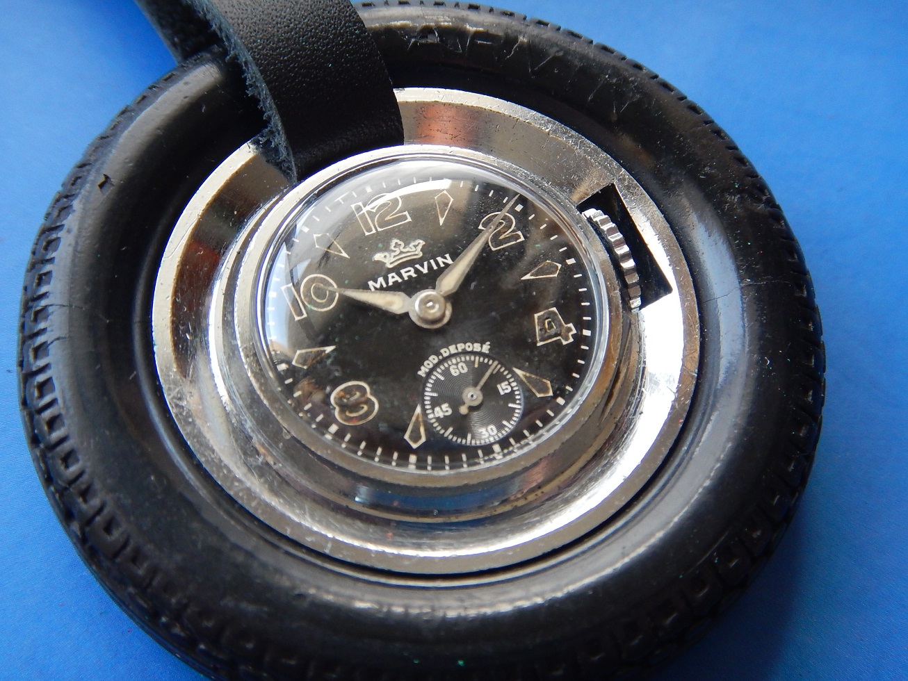 RARE MONTRE MARVIN TYRE PNEU PORTE CLEFS ANNÉES 40 SUPERBE ÉTAT GARANTIE 2 ANS 365.00 € Catégorie : Montres de collection Contactez-nous Contactez-nous pour acheter RARE MONTRE MARVIN TYRE PNEU PORTE CLEFS ANNÉES 40 SUPERBE ÉTAT GARANTIE 2 ANS Votre nom Votre e-mail Votre numéro de téléphone Votre message (facultatif) Description HISTOIRE D’UNE GRANDE MANUFACTURE SUISSE En 1850, les frères Marc et Emmanuel Didisheim créent un comptoir horloger à Saint-Imier, au cœur de l’arc jurassien, berceau de l’horlogerie suisse. Saint-Imier possède une longue tradition horlogère. Les premières pièces d’horlogerie y apparaissent dès 1720, et le rythme s’accroît à partir de 1770. A l’époque, la grande majorité des horlogers ne manufacture qu’une partie de la montre, souvent des boites or ou argent, livrées à des « termineurs », à la Chaux de Fonds ou au Locle. A partir de 1800, la cité développe le système de l’établissage : Dans de petits ateliers ou à domicile, les horlogers travaillent artisanalement des composants pour des fabricants locaux qui fournissent les ébauches. Ces derniers font ensuite terminer les montres dans leur comptoir, par du personnel spécialisé et assurent la commercialisation. C’est dans ce contexte que les frères Didisheim ouvrent leur comptoir. Pour attirer le marché américain avec une marque plus résonnante, l’entreprise prend le nom de leur distributeur américain. À partir de 1905, le nom Marvin est introduit, toujours exploité par les Didsheims, avec leur production déplacée de Berne à La Chaux-de-Fonds. En 1970 Marvin suscite l’intérêt de plusieurs repreneurs. Elle rejoint ainsi le groupe MSR (Manufactures d’horlogerie Suisses Réunies) en 1973. Tout en continuant à produire ses propres collections, elle fournit des mouvements à Revue Thommen et Vulcain, autres marques du Groupe. La marque Marvin sera ensuite développée par un groupe italien qui réhabilitera ses modèles phares, la Gauche, la Saltarello, la Gyroplan … et sa tradition des mouvements mécaniques. POURQUOI INVERTIR DANS LE TEMPS ? De tout le domaine horloger, la montre ancienne est certainement l’objet le plus collectionné. Les premières montres portables datent du début du XVIe siècle, quand les artisans horlogers se mirent à réaliser des réductions d’horloges de table, devenues transportables grâce à l’invention du ressort. Certains historiens pensent que le besoin d’une horloge mobile venait des riches marchands de la Renaissance. Ils avaient à connaître l’heure dans leur « voiture » qui leur tenait lieu de bureau. La montre de carrosse naquit de ce besoin. La montre pendentif, puis la montre de poche n’en seraient que la réduction. Les premières montres sont rarement signées. Ce n’est qu’en fin du XVIIe siècle qu’apparaissent quelques mouvements signés (sur les montres de grands horlogers du type Breguet, Leroy, Patek Philippe…). Au fil du XVIIIe siècle on trouve de plus en plus fréquemment une signature sur le cadran et sur le mouvement. Au XIXe on la trouve parfois sur le boîtier ou sur le couvercle intérieur. La signature de la montre est aujourd’hui un important critère pour le collectionneur car elle permet de situer précisément l’époque, le contexte et le lieu, car on dispose d’un nombre étonnant de renseignements sur certains horlogers. « MARVIN TYRE », LA MONTRE/PNEU CRÉÉE À LA FIN DES ANNÉES 30 Voici donc un garde temps qui amuse et déclenche de la curiosité. Oui, c’est une montre/pneu… un sacré chef-d’œuvre de marketing. La montre « Marvin Tyre » a été créée dans les années 1930 par René Didisheim et représente un hommage à la passion de la famille pour les voitures. L’idée de base était d’attirer l’attention des amateurs de moteurs qui ont une profonde affection pour leurs voitures. Le lancement de la montre pneumatique était un pur pari qui a finalement atteint le jackpot. Les premiers grondements ont été entendus en Italie, où Marvin vendait 500 montres par an. La montre pneu a été commercialisée pendant quelques mois. L’année suivante, les ventes sur ce marché ont dépassé 10.000 montres. Au vue de ces nombreuses commandes, la publicité s’est étendue à l’échelle internationale, entraînant des commandes en provenance de tous les horizons, la France, l’Autriche, les États-Unis et l’Inde … Une grande partie de ce succès fut le résultat du partenariat stratégique de Marvin avec la compagnie aérienne KLM à partir de 1955. Les hôtesses de l’air portaient une montre à clip sur le revers de leurs uniformes, c’était « une variation » de la célèbre montre pneu. Je vous invite à découvrir mes photos de nombreuses publicités, promues avec le célèbre Flying Dutchman, la montre officielle des pilotes d’avion néerlandais. Marvin « Le cadeau d’anniversaire idéal ! Savez-vous que plus de 77000 automobilistes portent une montre à pneus Marvin attachée à la clé de contact de leur voiture… et parmi eux les célèbres as de la course : Fangio, Toulo de Graffenried, Tony Rolt, Hamilton, John Fitch ! » La montre Marvin Tyre était proposée en or, en plaqué or laminé ou en chrome avec un cadran noir ou argenté, certains même avec un certificat officiel de chronomètre. Certains modèles pouvaient se déplier de l’intérieur du pneu et se positionner debout, comme une horloge de bureau. Les clients pouvaient choisir entre des pneus noirs, blancs, verts ou bleus. DESCRIPTION ET CARACTÉRISTIQUES TECHNIQUES Période de fabrication : Modèle des années 40. Dimensions : diamètre 53 mm et 12,5 mm d’épaisseur verres compris. Boîtier : un objet très audacieux. il fallait y penser, ce que vous voyez sur mes photos n’est rien de plus qu’un mouvement de montre classique derrière du plexiglas planté dans la jante d’un petit pneu en caoutchouc signé MARVIN. La « jante » est en 