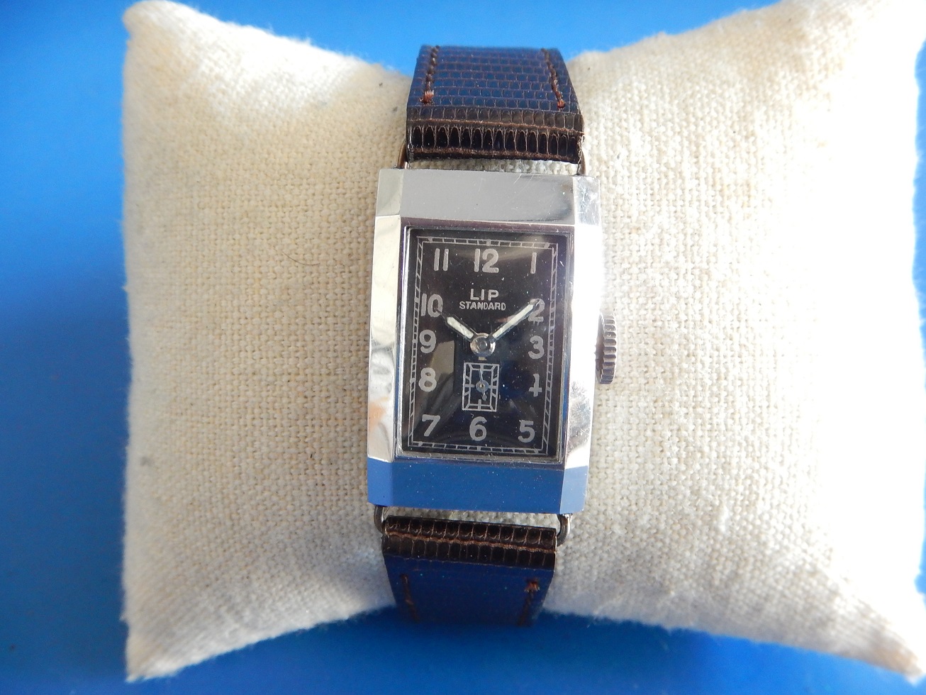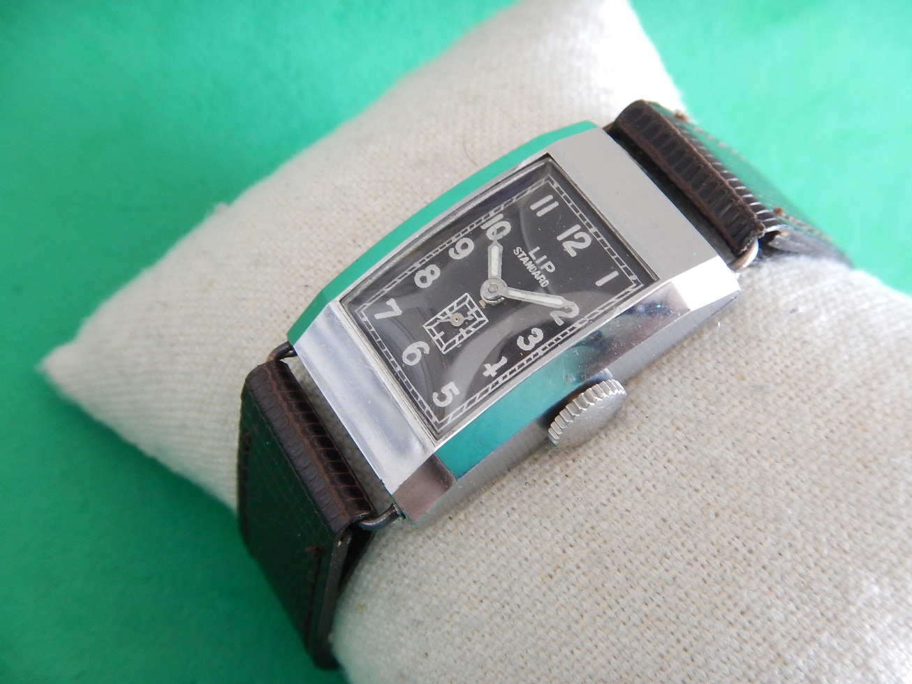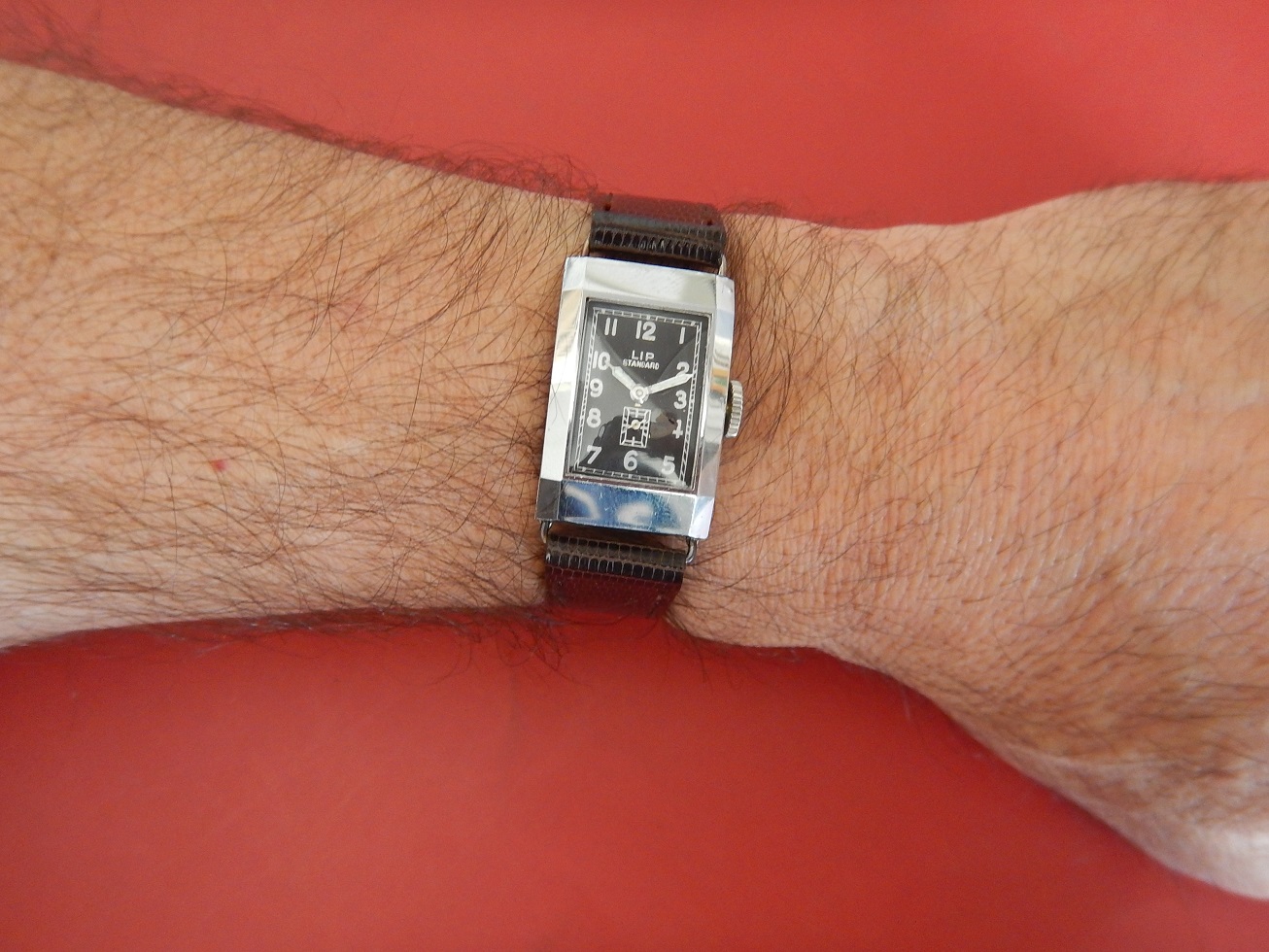 UNE DES PREMIÈRES LIP T18 ACIER STAYBRITE 1930 ART DÉCO RÉVISÉE GARANTIE 590.00 € Catégorie : Montres de collection Contactez-nous Contactez-nous pour acheter UNE DES PREMIÈRES LIP T18 ACIER STAYBRITE 1930 ART DÉCO RÉVISÉE GARANTIE Votre nom Votre e-mail Votre numéro de téléphone Votre message (facultatif) Description HISTOIRE DE LA MANUFACTURE Créée par Ernest Lipmann en 1896, la marque Lip connaît un essor important au début du siècle. Après la guerre de 40, Fred Lip s’oriente vers la recherche dans le domaine des montres électroniques. Elle sera l’une des premières à proposer des montres à quartz et à faire appelle à des designers comme Roger Tallon. Après de nombreux problèmes sociaux dans les années 70, on peut dire qu’elle est le fleuron du patrimoine horloger Français Sa fille : « Écrire (…) est toujours un exercice périlleux surtout quand il s’agit de son propre père et Fred Lip était mon père. C’était un homme hors du commun, un original, un visionnaire. Son comportement pour le moins inhabituel et son caractère tranché lui ont attiré de solides inimitiés et beaucoup d’incompréhensions mais ils lui ont aussi acquis des amitiés profondes et assuré la fidélité de bon nombre de gens de toutes sortes, employés, artistes, scientifiques, alpinistes, industriels et même hommes politiques. Comme tous les hommes, il avait des défauts et a fait des erreurs mais, comme peu d’hommes, il a réussi des choses extraordinaires et a eu des passions dévorantes. Parmi toutes ses passions, en dehors de celle, dévorante, qu’il me vouait, à moi sa fille unique, il y a eu la montagne et les voitures rapides et, surtout, celle qu’il a toujours entretenue pour la société Lip, cette société qu’il a retrouvée ruinée au lendemain de la guerre. Pourtant, contre vents et marées, grâce à son travail, son courage et son imagination, il a réussi à en faire une grande société, connue et reconnue dans le monde entier, un symbole et un modèle de ce qu’aurait dû être une société horlogère. Il en a fait la société à qui l’horlogerie doit tant de choses qui semblent aujourd’hui, banales. Qui se souvient que la première chaîne de montage automatisée pour l’horlogerie, c’est lui ? Qui se souvient que la première montre-bracelet électrique, c’est encore lui ? Qui se souvient encore, c’est à Lip qu’on doit la première et sans doute la seule minuterie mécanique programmable pour satellite construite pour l’ESA ? Qui se souvient aussi qu’en 1929, Fred Lip était recordman du monde de vitesse à moto sur 5 & 10 km et 5 & 10 miles ? Sans doute plus personne ! Hélas, ce qu’on a appelé les évènements Lip et tout ce qui les a accompagnés, non seulement ont détruit la société qui portait son nom mais ont également laissé de lui une image qui ne correspond ni à la réalité de la société ni à la vérité de l’homme qu’il était. Était-il, malgré ses erreurs, le dernier survivant de la race des industriels créateurs et pionniers tels qu’on en voyait tant au XIXè siecle ou un de ces visionnaires qui ont préparé le passage au XXIè siècle ? Nul ne peut le dire (…) ». MYTHIQUE CALIBRE DE FORME, LE T 18 La montre Lip T18, initialement appelée la Type 18 est sûrement le modèle le plus connu de la marque. Retour sur son histoire, l’origine de son nom, ses avancées horlogères et ses dimensions compactes qui en ont fait une montre bracelet de référence connue et appréciée par Winston Churchill et par des centaines de collectionneurs de par le monde. Liée également à l’histoire de notre pays, une T18 fut offerte à Sir Winston Churchill (1948) par le Gouvernement Français, en remerciement des services rendus par la Grande-Bretagne à la France durant la seconde Guerre Mondiale. Très recherchée par les amateurs avertis ou les collectionneurs, elle est toujours fabriquée mais à quartz (celle que je vous présente ici est bien entendu d’époque 1940 avec un mécanisme à remontage manuel). Produites initialement jusqu’en 1950, il y eu de nombreuses déclinaisons de la Lip T18 avec des formes de boîte le plus souvent rectangulaire ou tonneau. Certains modèles ont hérité de nom en référence à leur forme particulière comme la T18 Képi, la T18 Carrosse… Les montres Lip T18 sont très prisées des collectionneurs de montres ; son mouvement mécanique Type 18 fait parti des pièces qui doivent figurer dans une collection de montres de par son histoire, son caractère exceptionnel et sa très grande précision qui ont construit sa réputation. POURQUOI « T18 » ??? Cette montre classique rectangulaire Type 18 doit son nom à son mouvement mécanique exceptionnel : «T» pour sa forme en tonneau et «18» pour ses 18 millimètres de largeur. Véritable prouesse technique à l’époque, ce mouvement mécanique a été développé en 1933 par André Donat, alors ingénieur de la SA d’horlogerie Lipmann Frères. La montre Lip T18 a suivi et supplanté le mouvement Type 20 (pour 20 mm) lancée en 1931 et qui possédait déjà une trotteuse excentrée (également appelée petite seconde) placée à 6 heures. Malgré ces 2 mm de moins en largeur, ce mouvement T18 était plus plat et réputé plus fiable. Produite dès 1935 sous l’impulsion de Fred Lip, sa production a connue des soubresauts avec l’arrivée de la seconde guerre mondiale. Entre 1939 et 1945, l’entreprise déménage dans le centre de la France, puis au Sud pour finir ces dernières années à Valence. Lip ne retournera à Besançon, sa ville d’origine qu’à la fin du conflit pour reconstruire son usine et reprendre une production plus importante. Ses avancées techniques et son extrême fiabilité ont fait de ce mouvement mécanique Type 18 une référence, ce qui explique qu’il servait de modèle aux élèves des écoles d’horlogerie dans les années 1940 / 1950. DESCRIPTION ET CARACT