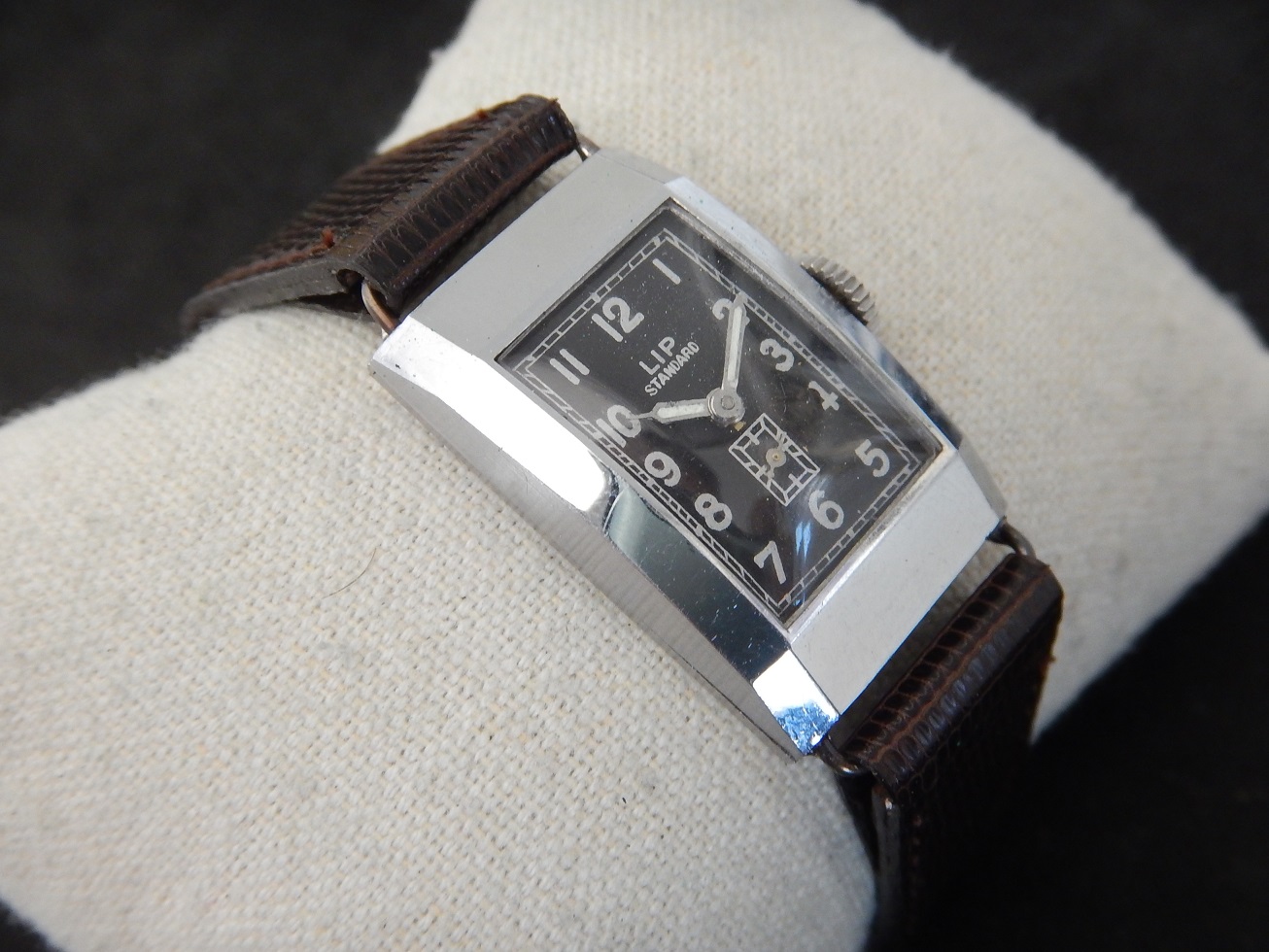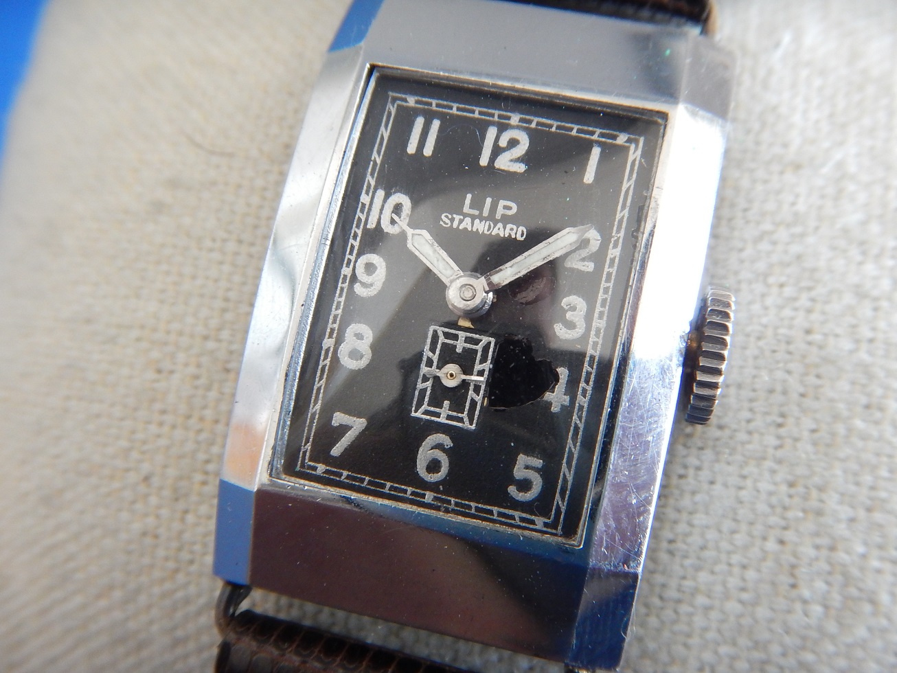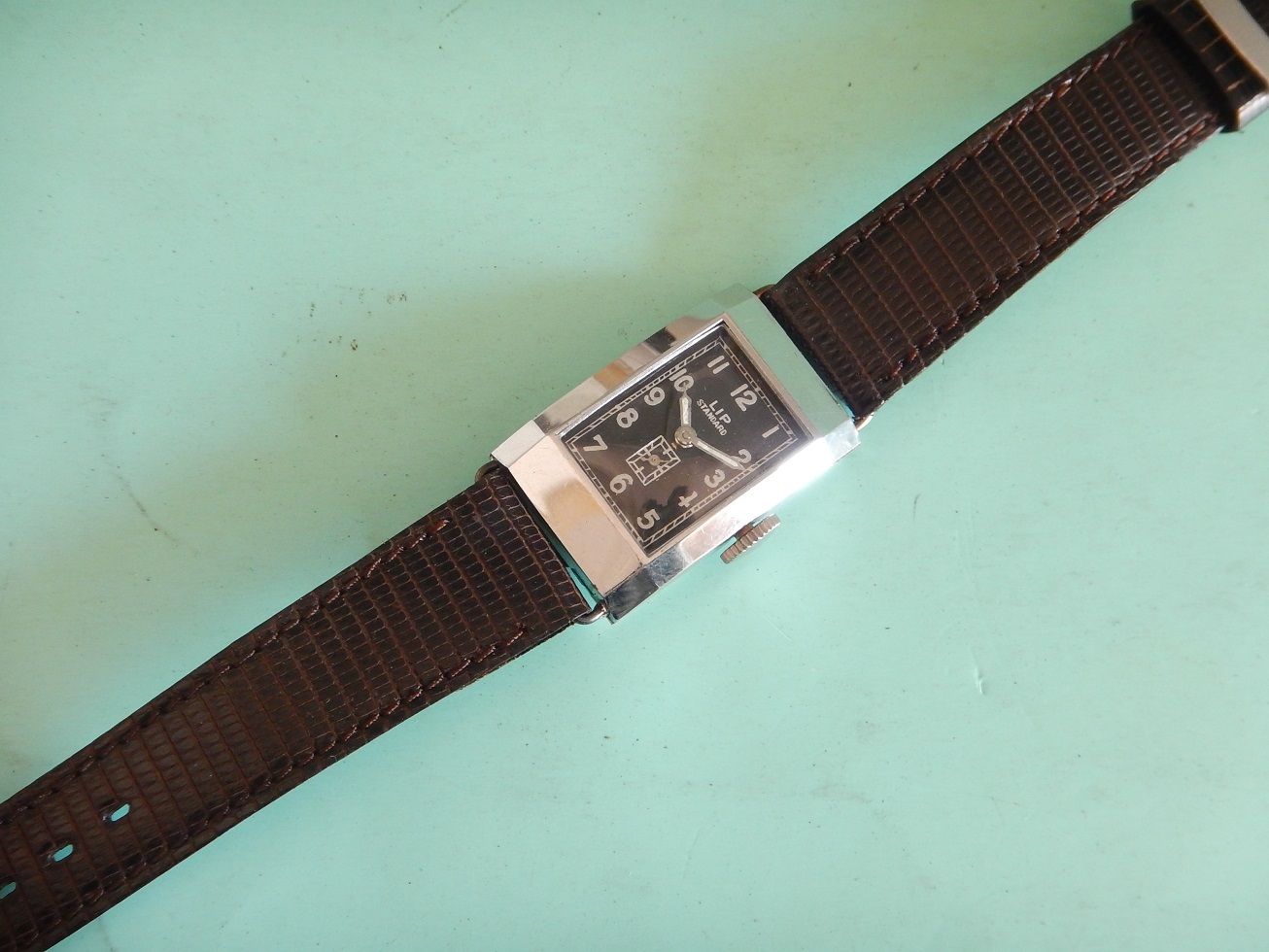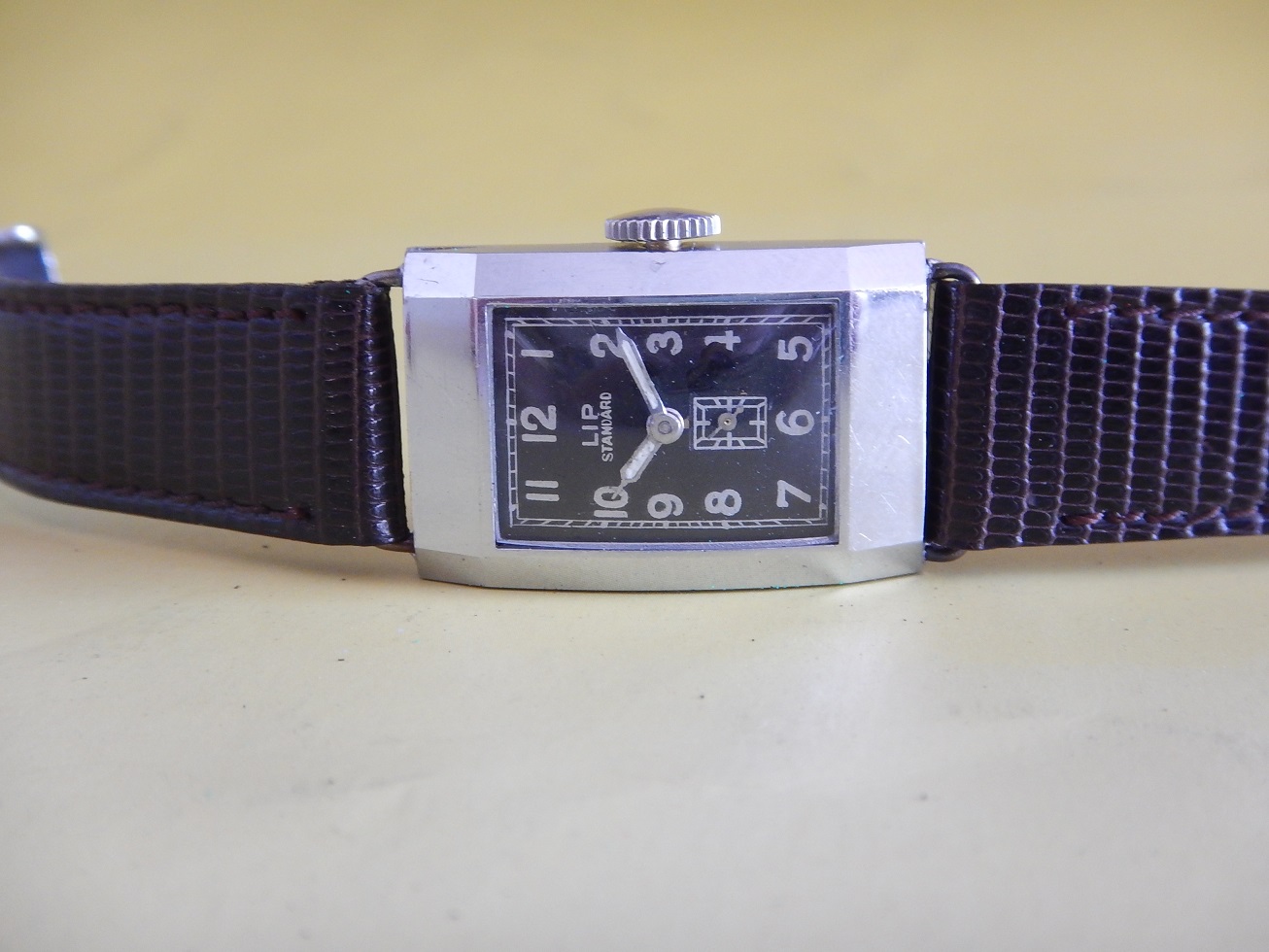 UNE DES PREMIÈRES LIP T18 ACIER STAYBRITE 1930 ART DÉCO RÉVISÉE GARANTIE 590.00 € Catégorie : Montres de collection Contactez-nous Contactez-nous pour acheter UNE DES PREMIÈRES LIP T18 ACIER STAYBRITE 1930 ART DÉCO RÉVISÉE GARANTIE Votre nom Votre e-mail Votre numéro de téléphone Votre message (facultatif) Description HISTOIRE DE LA MANUFACTURE Créée par Ernest Lipmann en 1896, la marque Lip connaît un essor important au début du siècle. Après la guerre de 40, Fred Lip s’oriente vers la recherche dans le domaine des montres électroniques. Elle sera l’une des premières à proposer des montres à quartz et à faire appelle à des designers comme Roger Tallon. Après de nombreux problèmes sociaux dans les années 70, on peut dire qu’elle est le fleuron du patrimoine horloger Français Sa fille : « Écrire (…) est toujours un exercice périlleux surtout quand il s’agit de son propre père et Fred Lip était mon père. C’était un homme hors du commun, un original, un visionnaire. Son comportement pour le moins inhabituel et son caractère tranché lui ont attiré de solides inimitiés et beaucoup d’incompréhensions mais ils lui ont aussi acquis des amitiés profondes et assuré la fidélité de bon nombre de gens de toutes sortes, employés, artistes, scientifiques, alpinistes, industriels et même hommes politiques. Comme tous les hommes, il avait des défauts et a fait des erreurs mais, comme peu d’hommes, il a réussi des choses extraordinaires et a eu des passions dévorantes. Parmi toutes ses passions, en dehors de celle, dévorante, qu’il me vouait, à moi sa fille unique, il y a eu la montagne et les voitures rapides et, surtout, celle qu’il a toujours entretenue pour la société Lip, cette société qu’il a retrouvée ruinée au lendemain de la guerre. Pourtant, contre vents et marées, grâce à son travail, son courage et son imagination, il a réussi à en faire une grande société, connue et reconnue dans le monde entier, un symbole et un modèle de ce qu’aurait dû être une société horlogère. Il en a fait la société à qui l’horlogerie doit tant de choses qui semblent aujourd’hui, banales. Qui se souvient que la première chaîne de montage automatisée pour l’horlogerie, c’est lui ? Qui se souvient que la première montre-bracelet électrique, c’est encore lui ? Qui se souvient encore, c’est à Lip qu’on doit la première et sans doute la seule minuterie mécanique programmable pour satellite construite pour l’ESA ? Qui se souvient aussi qu’en 1929, Fred Lip était recordman du monde de vitesse à moto sur 5 & 10 km et 5 & 10 miles ? Sans doute plus personne ! Hélas, ce qu’on a appelé les évènements Lip et tout ce qui les a accompagnés, non seulement ont détruit la société qui portait son nom mais ont également laissé de lui une image qui ne correspond ni à la réalité de la société ni à la vérité de l’homme qu’il était. Était-il, malgré ses erreurs, le dernier survivant de la race des industriels créateurs et pionniers tels qu’on en voyait tant au XIXè siecle ou un de ces visionnaires qui ont préparé le passage au XXIè siècle ? Nul ne peut le dire (…) ». MYTHIQUE CALIBRE DE FORME, LE T 18 La montre Lip T18, initialement appelée la Type 18 est sûrement le modèle le plus connu de la marque. Retour sur son histoire, l’origine de son nom, ses avancées horlogères et ses dimensions compactes qui en ont fait une montre bracelet de référence connue et appréciée par Winston Churchill et par des centaines de collectionneurs de par le monde. Liée également à l’histoire de notre pays, une T18 fut offerte à Sir Winston Churchill (1948) par le Gouvernement Français, en remerciement des services rendus par la Grande-Bretagne à la France durant la seconde Guerre Mondiale. Très recherchée par les amateurs avertis ou les collectionneurs, elle est toujours fabriquée mais à quartz (celle que je vous présente ici est bien entendu d’époque 1940 avec un mécanisme à remontage manuel). Produites initialement jusqu’en 1950, il y eu de nombreuses déclinaisons de la Lip T18 avec des formes de boîte le plus souvent rectangulaire ou tonneau. Certains modèles ont hérité de nom en référence à leur forme particulière comme la T18 Képi, la T18 Carrosse… Les montres Lip T18 sont très prisées des collectionneurs de montres ; son mouvement mécanique Type 18 fait parti des pièces qui doivent figurer dans une collection de montres de par son histoire, son caractère exceptionnel et sa très grande précision qui ont construit sa réputation. POURQUOI « T18 » ??? Cette montre classique rectangulaire Type 18 doit son nom à son mouvement mécanique exceptionnel : «T» pour sa forme en tonneau et «18» pour ses 18 millimètres de largeur. Véritable prouesse technique à l’époque, ce mouvement mécanique a été développé en 1933 par André Donat, alors ingénieur de la SA d’horlogerie Lipmann Frères. La montre Lip T18 a suivi et supplanté le mouvement Type 20 (pour 20 mm) lancée en 1931 et qui possédait déjà une trotteuse excentrée (également appelée petite seconde) placée à 6 heures. Malgré ces 2 mm de moins en largeur, ce mouvement T18 était plus plat et réputé plus fiable. Produite dès 1935 sous l’impulsion de Fred Lip, sa production a connue des soubresauts avec l’arrivée de la seconde guerre mondiale. Entre 1939 et 1945, l’entreprise déménage dans le centre de la France, puis au Sud pour finir ces dernières années à Valence. Lip ne retournera à Besançon, sa ville d’origine qu’à la fin du conflit pour reconstruire son usine et reprendre une production plus importante. Ses avancées techniques et son extrême fiabilité ont fait de ce mouvement mécanique Type 18 une référence, ce qui explique qu’il servait de modèle aux élèves des écoles d’horlogerie dans les années 1940 / 1950. DESCRIPTION ET CARACT