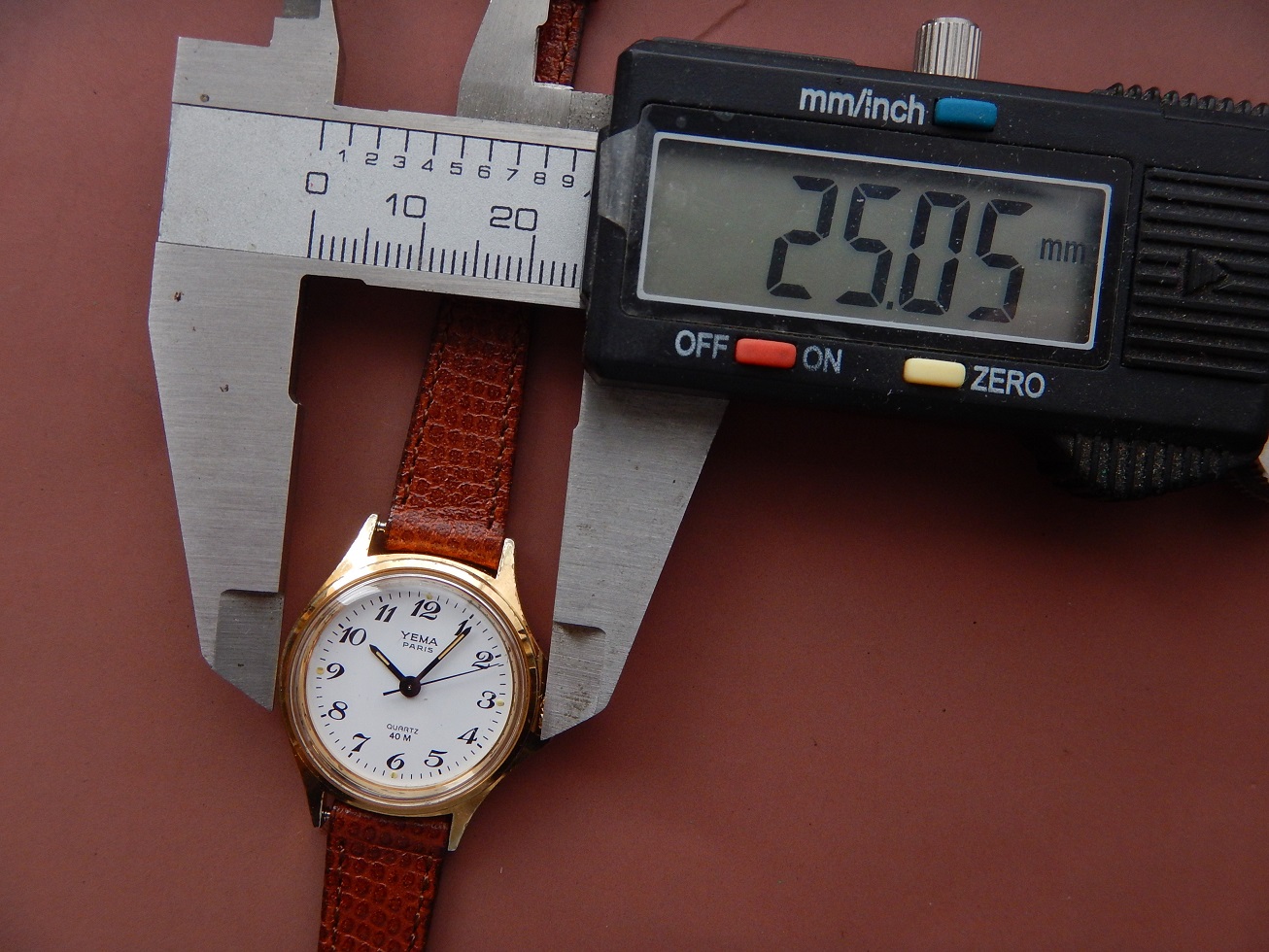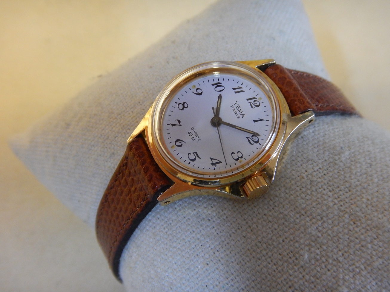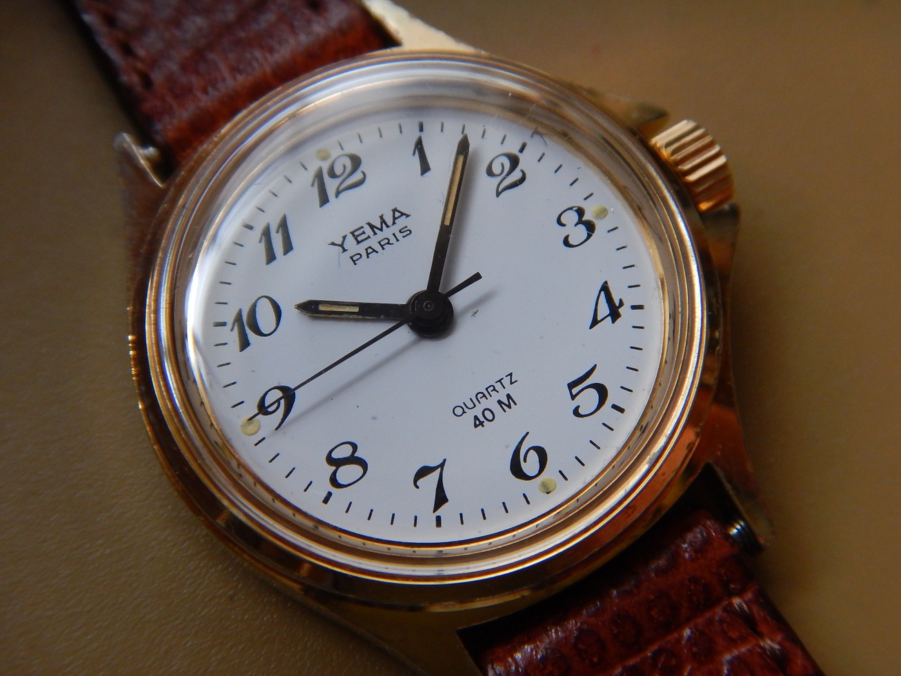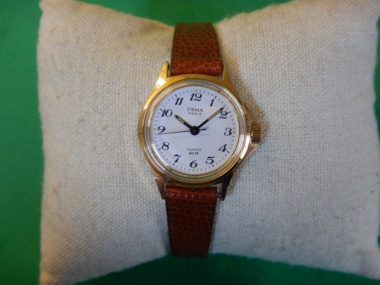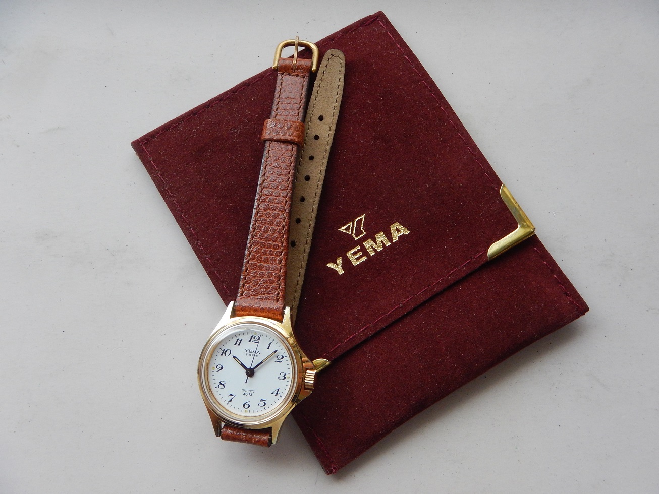 YEMA PARIS ANNÉES 80 CHIFFRES BRÉGUET SUPERBE ÉTAT RÉVISÉE GARANTIE 2 ans 115.00 € Catégorie : Montres de collection Contactez-nous Contactez-nous pour acheter YEMA PARIS ANNÉES 80 CHIFFRES BRÉGUET SUPERBE ÉTAT RÉVISÉE GARANTIE 2 ans Votre nom Votre e-mail Votre numéro de téléphone Votre message (facultatif) Description ET DEPUIS QUAND YEMA ??? Peu de personnes savent que Yema est une marque Française … Et oui, si l’ on demande à un étranger quelles sont les marques Françaises qu’ils leurs viennent à l’ esprit, ils répondent Lip et Yema. Et pour cause la société Yema commence en 1948, c’ est monsieur Belmont qui en a l’ idée. Au fil des années cette marque Française se forge une solide réputation sur le marché des chronomètres et des montres de plongées. En 1965, grâce au succès du marché américains, Yema est proclamée la marque Française la plus exportée. En 1982 Yema équipe les spationautes français et devient fournisseur officiel du CNES.En 1982, Yema franchit le seuil historique des 2 millions d’exemplaires produits. La marque connaît ensuite plusieurs rachats successifs : Matra en 1982, CGH en 1988 et Yema SA en 1995. Depuis 1948 Yema cultive son image de multispécialiste et nous confectionne de superbes gardes temps de qualité et collectionnés de nos jours. En 1979, Matra acquiert une importante part du capital de YEMA et remplace progressivement l’ancien logo »y » par YEMA ou YEMA PARIS sur 2 lignes, sur les montres classiques comme sur les montres « sport ». La majorité de la production est sobrement estampillée YEMA PARIS. Sur de nombreuses montres dame et homme de cette époque, YEMA solitaire est inscrit en majuscules à 12 h. En 1982, l’accroche publicitaire de YEMA devient « YEMA PARIS », une marque de personnalité ». Et « YEMA PARIS » s’affiche majoritairement sur les cadrans des montres commercialisées jusqu’en 1994. DESCRIPTION et SOUS LE CAPOT Dimensions : Largeur hors couronnes de remontoir 25 mm, longueur totale à l’extrémité des anses 30,4 mm et 9 mm d’épaisseur verre compris. Boîtier : un grand classique, de forme ronde, sobre, intemporelle, indémodable, en métal plaqué oravec le fond vissé en acier inoxydable. Cadran : Blanc, des aiguilles « bâtons » noires et des chiffres Arabes de type Bréguet. Facilement et rapidement lisible. Verre : plexi, neuf, je l’ai remplacé lors de ma révision complète. Mouvement : Électronique à quartz, Japonais, le Shiojiri Y121A, mouvement très fiable et précis utilisé par de nombreuses marques. pile remplacée, garantie 2 ans. Bracelet : Neuf, en cuir de véritable signé YEMA Paris, de couleur marron « fauve », 12 mm de large au niveau de la montre, pour un poignet maximum de 18 cm. Observation : un modèle classique à porter tous les jours pour un rapport/qualité/prix imbattable. Produits similaires Montres de collection1933 TRÈS RARE OMEGA DE SAC / BUREAU DESK DANS SON ÉTUI EN CUIR Cal. Ω 37.6S.15P 780.00 € Lire la suite Montres de collectionLUXUEUSE CARTIER SANTOS RONDE LADY SUPERBE ÉTAT GÉNÉRAL OR ACIER GARANTIE 2 ans 1,900.00 € Lire la suite Montres de collection1939 RARE UNE DES PREMIERES OMEGA CALIBRE 30 CADRAN TROPICAL SUPER ÉTAT GARANTIE 840.00 € Lire la suite Montres de collectionØ 38 RARE CHRONO LONGINES 30CH D’ORIGINE ACIER 1956 FLYBACK SUPERBE ÉTAT GÉNÉRAL 8,200.00 € Lire la suite